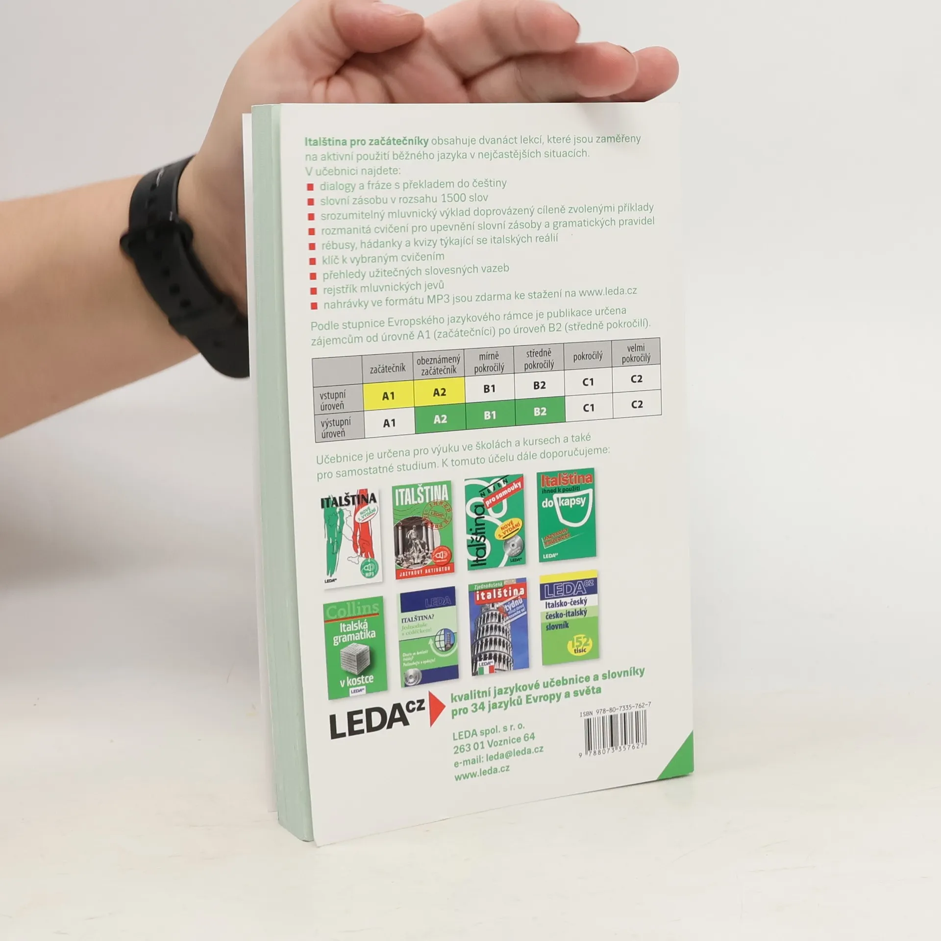Italština pro začátečníky obsahuje dvanáct lekcí, které jsou zaměřeny na aktivní použití běžného jazyka v nejčastějších situacích. V učebnici najdete: - dialogy a fráze s překladem do češtiny - slovní zásobu v rozsahu 1500 slov - srozumitelný mluvnický výklad doprovázený cíleně zvolenými příklady - rozmanitá cvičení pro upevnění slovní zásoby a gramatických pravidel - rébusy, hádanky a kvizy týkající se italských reálií - klíč k vybraným cvičením - přehledy užitečných slovesných vazeb - rejstřík mluvnických jevů - CD s nahrávkami ve formátu MP3 Učebnice je určena pro výuku ve školách a kursech a také pro samostatné studium.