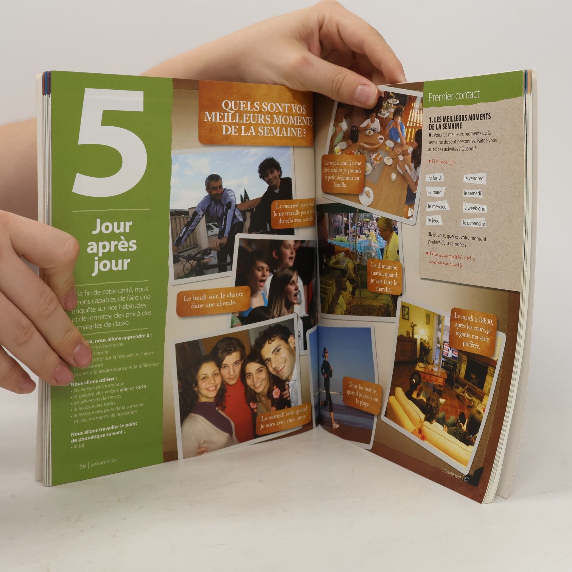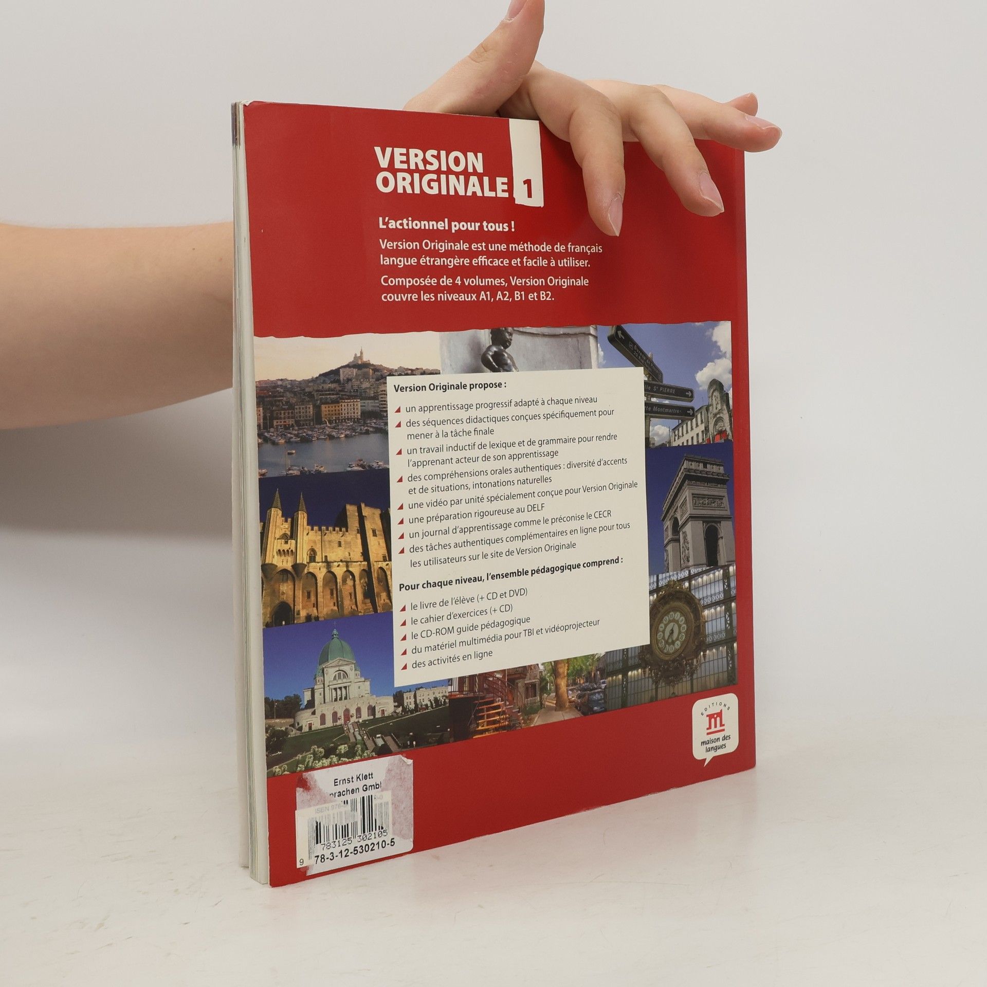 Version Originale 1 compte 8 unités, de 12 pages. Cette nouvelle méthode suit une structure et une progression bien précises : Premier contact, une double page qui invite l´étudiant a réagir sur des documents en relation avec le theme de l´unité. Textes et contextes, une double page comprenant de nombreux documents pour activer les connaissances de l´étudiant. A la découverte de la langue, trois pages pour un travail plus approfondi sur la langue. L´étudiant construit son propre lexique et sa propre grammaire. Des activités de phonétique sont aussi incluses. Outils, une page de résumé grammatical de l´unité, synthétisée sous forme de schémas, listes et illustrations. Outils en action... et tâches, des activités en contextes qui reprennent ce qui a été vu dans les pages précédentes et qui amenent a la réalisation de la tâche finale. Regards sur..., une double page qui met en relief le monde francophone et propose une exploitation du chapitre du DVD spécialement conçu pour la méthode.