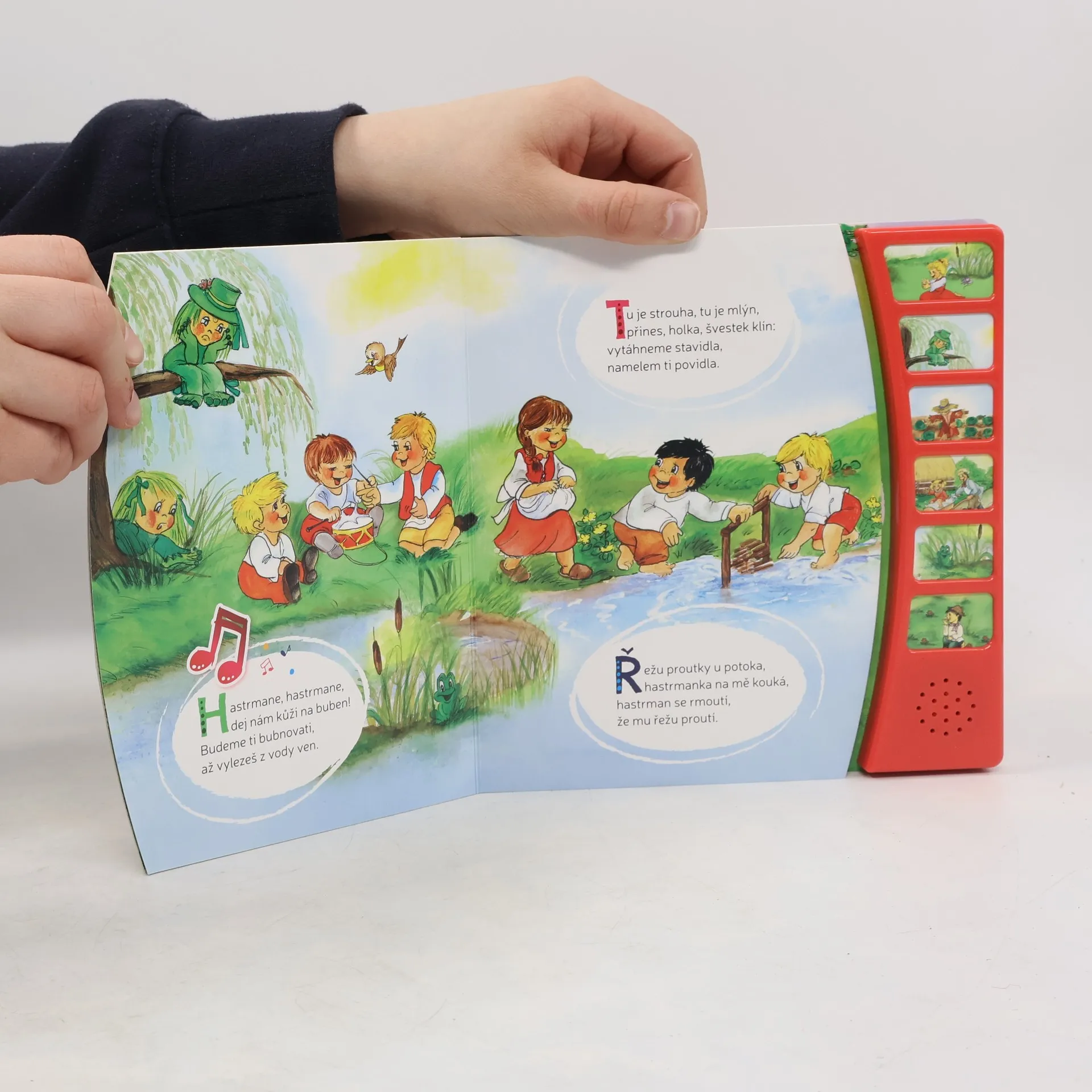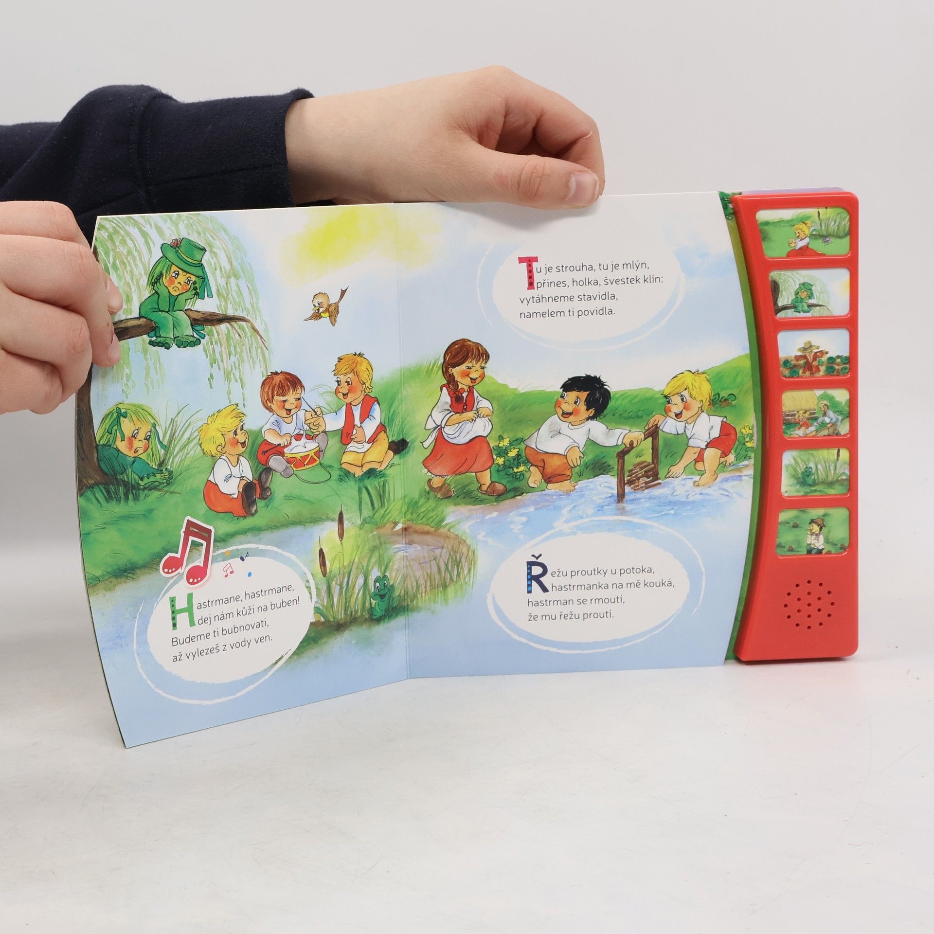 V knize najdete osmnáct oblíbených českých říkadel a tentokrát se zvukovým modulem. Šest říkadel, jako například Paci, paci pacičky, Antonín, veze kmín, Kolo, kolo mlýnský, Sedí žába v rákosí, mohou děti po stlačení tlačítka opakovaně poslouchat.