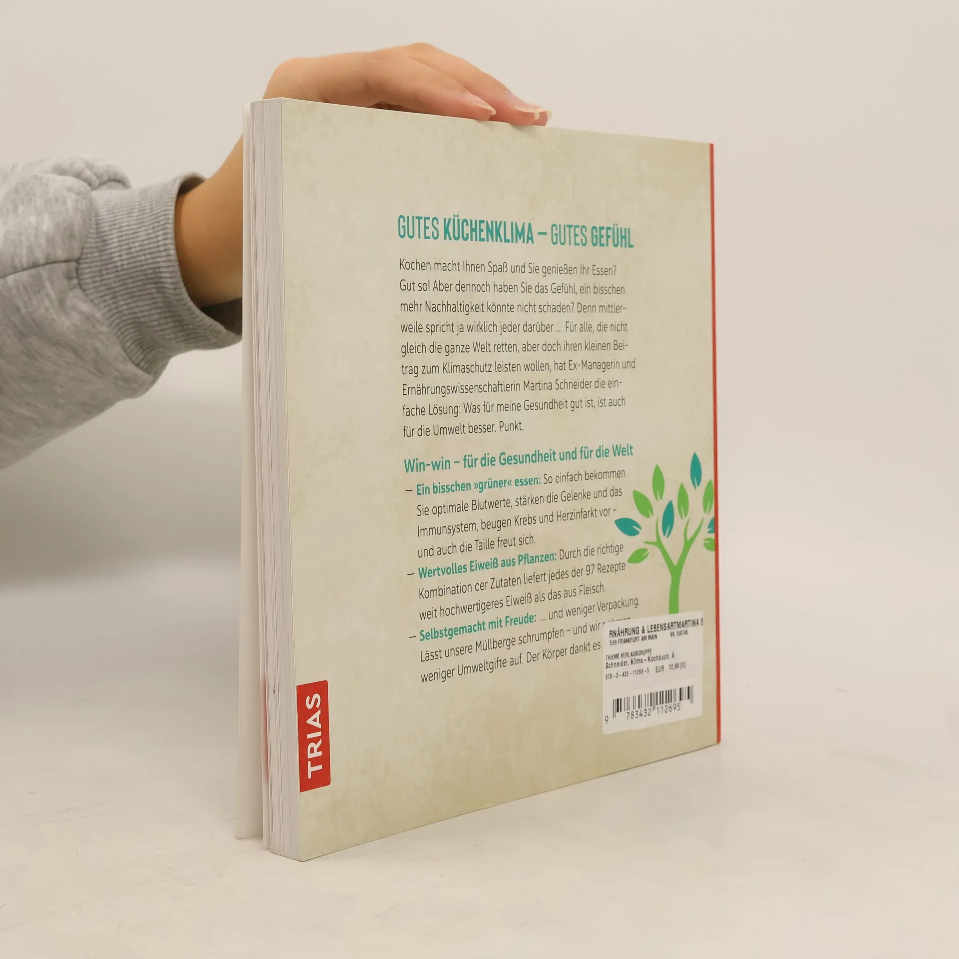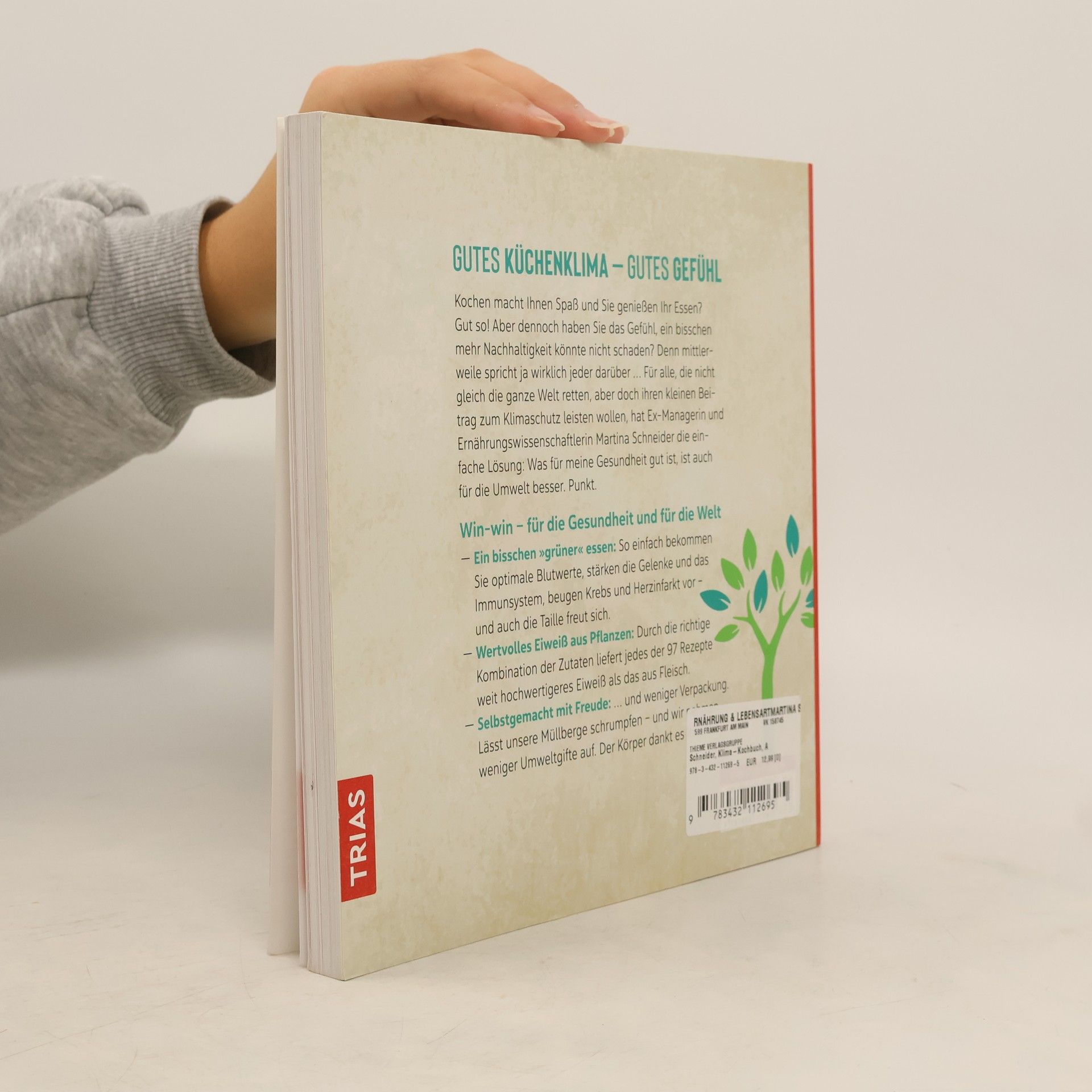Gutes Küchenklima – Gutes Gefühl Kochen macht Ihnen Spaß und Sie genießen Ihr Essen? Gut so! Aber dennoch haben Sie das Gefühl, ein bisschen mehr Nachhaltigkeit könnte nicht schaden? Denn mittlerweile spricht ja wirklich jeder darüber…Für alle, die nicht gleich die ganze Welt retten, aber doch ihren kleinen Beitrag zum Klimaschutz leisten wollen, hat Ex-Managerin und Ernährungswissenschaftlerin Martina Schneider die einfache Lö Was für meine Gesundheit gut ist, ist auch für die Umwelt besser. Punkt. Win-win – für die Gesundheit und für die Welt - Ein bisschen "grüner" So einfach bekommen Sie optimale Blutwerte, stärken die Gelenke, beugen Krebs und Herzinfarkt vor – und auch die Taille freut sich. - Wertvolles Eiweiß aus durch die richtige Kombination der Zutaten liefert jedes der 97 Rezepte weit hochwertigeres Eiweiß als das aus Fleisch. - Selbstgemacht mit … und weniger Verpackung. Lässt unsere Müllberge schrumpfen – und wir nehmen weniger Umweltgifte auf. Der Körper dankt es Ihnen!