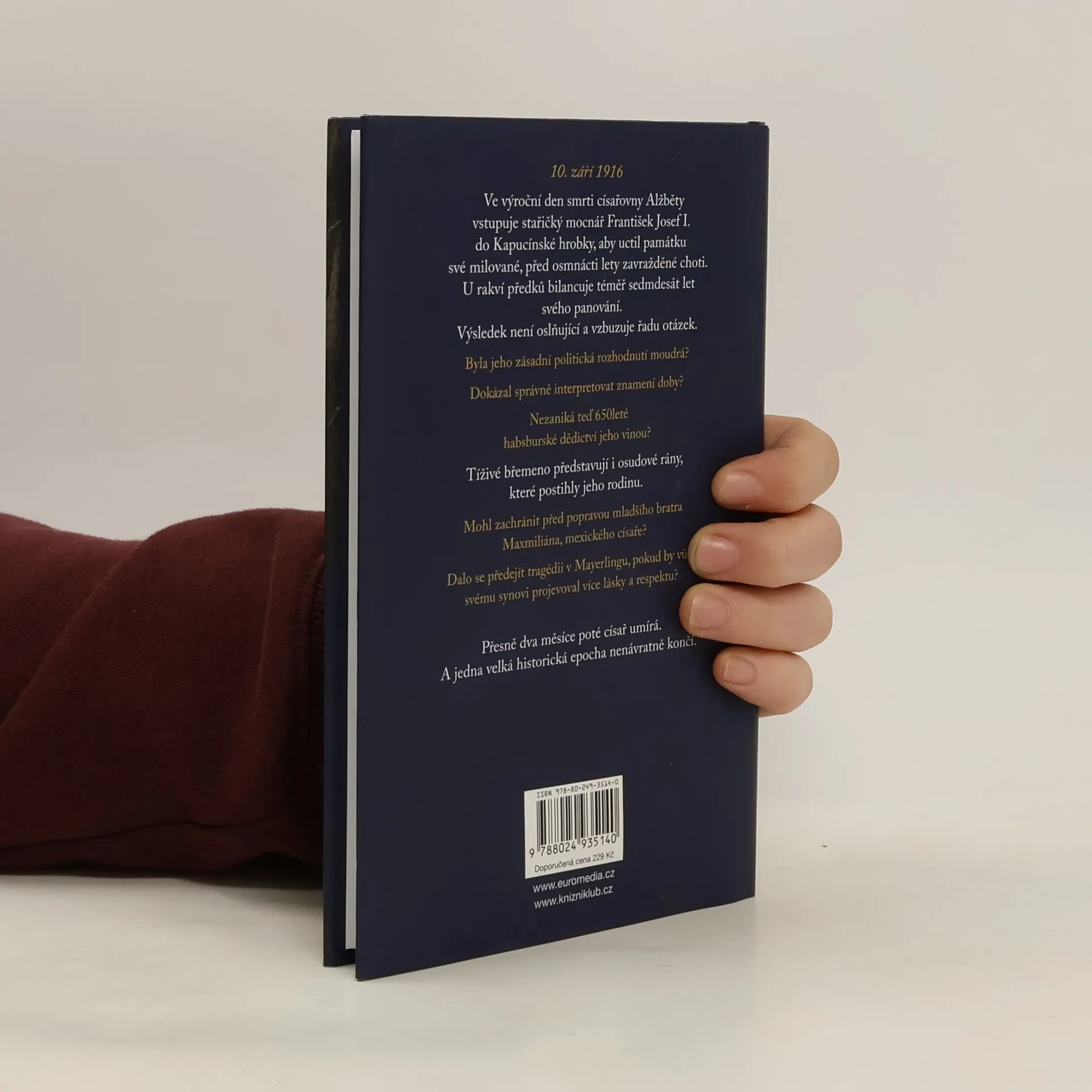 Sigrid-Maria Grössingová, odbornice na dějiny habsburského rodu, necharakterizuje Františka Josefa I. a jeho éru z historické perspektivy, nýbrž tím, že dává slovo samotnému císaři. Tímto neotřelým způsobem vykreslila velmi osobitý, lidský portrét vladaře, který se již za svého života stal legendou.