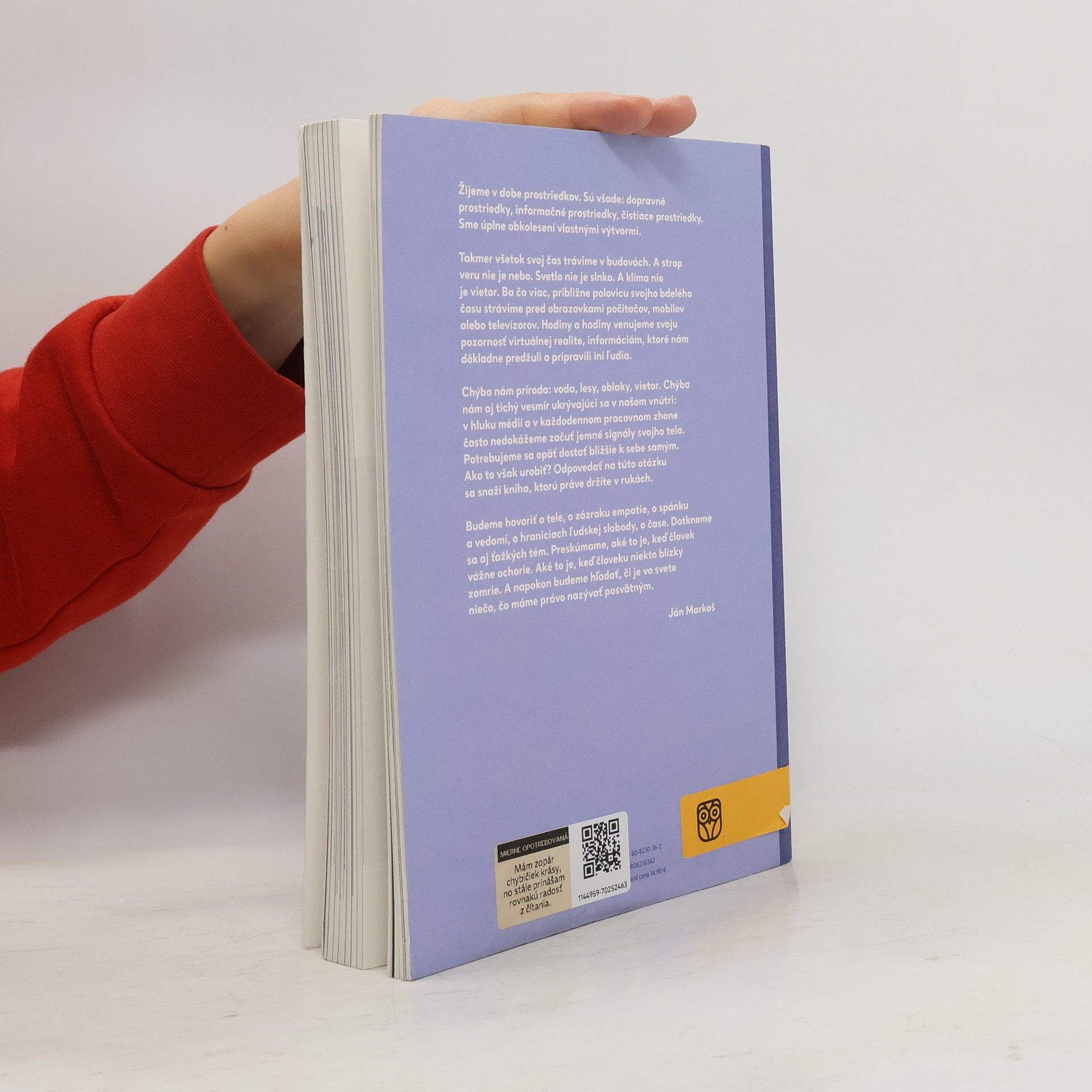 Žijeme v dobe prostriedkov. Sú všade: dopravné prostriedky, informačné prostriedky, čistiace prostriedky. Sme úplne obkolesení vlastnými výtvormi. Takmer všetok svoj čas trávime v budovách. A strop veru nie je nebo. Svetlo nie je slnko. A klíma nie je vietor. Ba čo viac, približne polovicu svojho bdelého času strávime pred obrazovkami počítačov, mobilov alebo televízorov. Hodiny a hodiny venujeme svoju pozornosť virtuálnej realite, informáciám, ktoré nám dôkladne predžuli a pripravili iní ľudia. Chýba nám príroda: voda, lesy, oblaky, vietor. Chýba nám aj tichý vesmír ukrývajúci sa v našom vnútri: v hluku médií a v každodennom pracovnom zhone často nedokážeme začuť jemné signály svojho tela. Potrebujeme sa opäť dostať bližšie k sebe samým. Ako to však urobiť? Odpovedať na túto otázku sa snaží kniha, ktorú práve držíte v rukách.