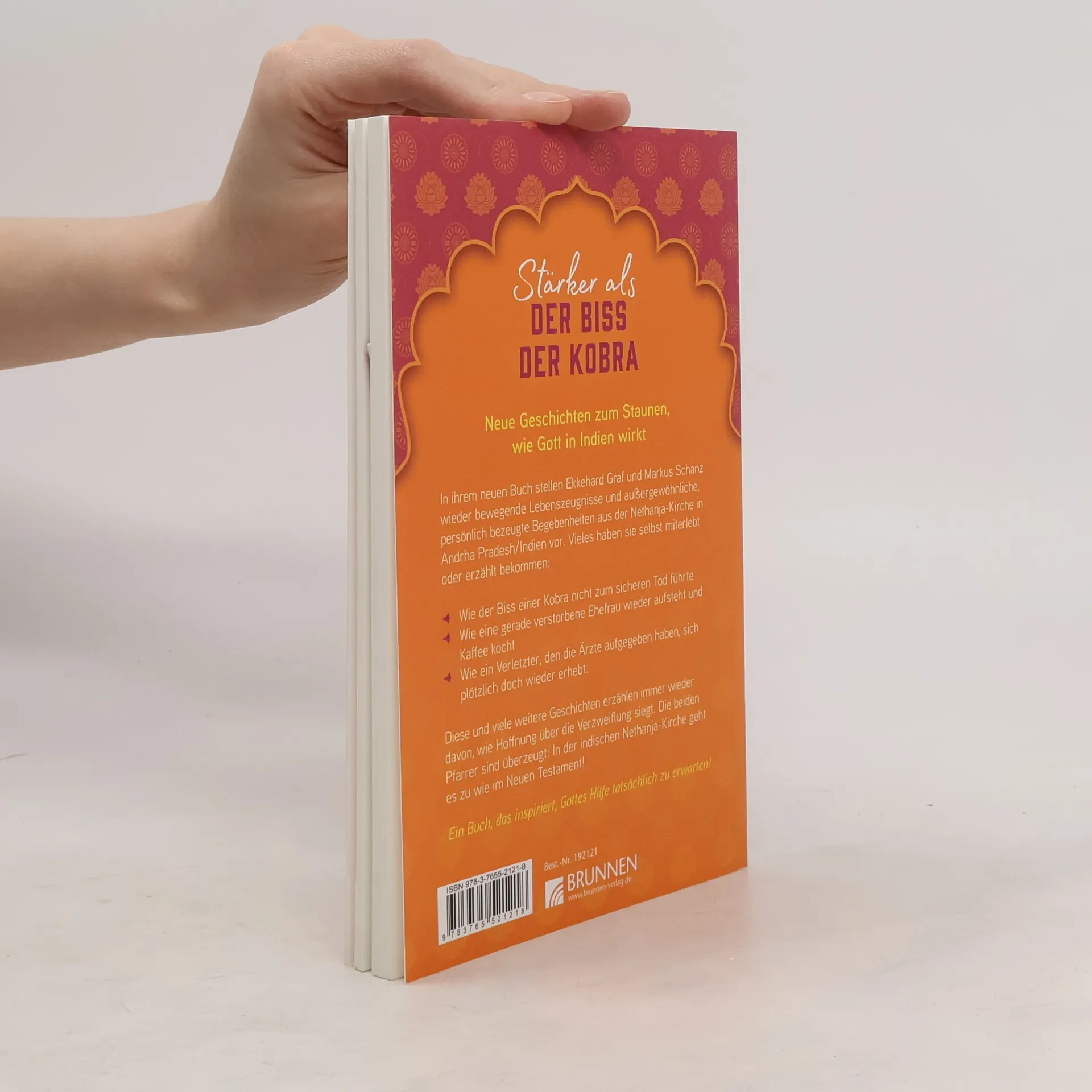 In ihrem neuen Buch stellen Ekkehard Graf und Markus Schanz wieder bewegende Lebenszeugnisse und außergewöhnliche Berichte, persönlich bezeugte wahre Begebenheiten aus der Nethanja-Kirche in Andrha Pradesh/Indien vor. Vieles haben sie selbst miterlebt oder erzählt Wie der Biss einer Kobra nicht zum sicheren Tod führte, wie eine gerade verstorbene Ehefrau wieder aufsteht und Kaffee kocht, wie ein Verletzter, den die Ärzte aufgegeben haben, sich plötzlich doch wieder erhebt. Diese und viele weitere Geschichten erzählen immer wieder davon, wie Hoffnung über die Verzweiflung siegt. Die beiden Pfarrer sind ü In der indischen Nethanja-Kirche geht es zu wie im Neuen Testament!Ein Buch, das inspiriert, Gottes Hilfe tatsächlich zu erwarten!