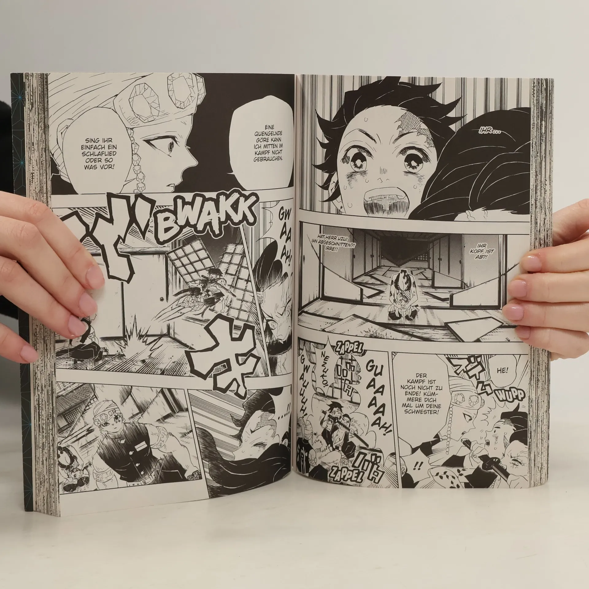 Tanjiro, Inosuke und Zenitsu haben ihre geheime Mission erfüllt und den Dämon aus seinem Versteck gelockt, der das Vergnügungsviertel schon seit vielen Jahren in Angst und Schrecken versetzt. Nun ist es an Tengen Uzui und seinen Mistreitern, den gefährlichen Gegner endgültig zu besiegen. Doch einen der Zwölf Dämonenmonde sollte man besser nicht unterschätzen. Ein harter Kampf steht bevor …