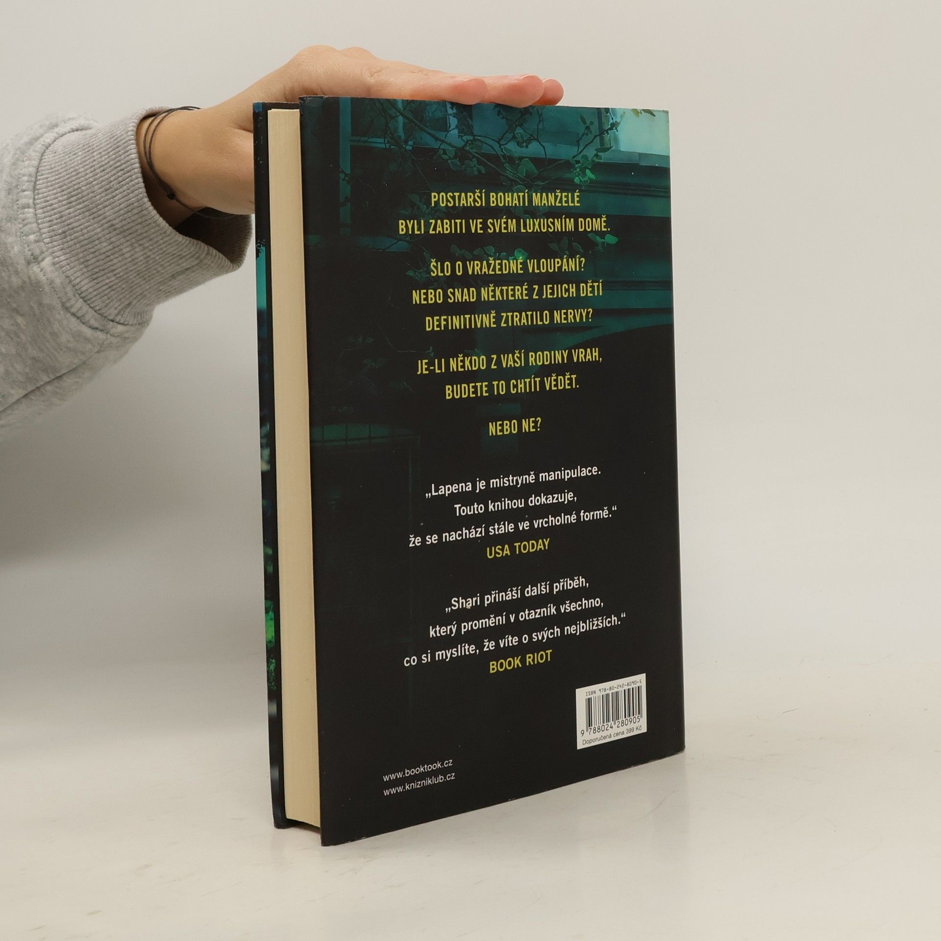 Nejnovější příběh mistryně psychothrilleru – opět dokonale drásavý a neodložitelný. Brecken Hill je drahá adresa. Musíte mít hodně peněz, abyste tu mohli bydlet. Tak jako Fred a Sheila Mertonovi. Žádné bohatství vás však neochrání, když vám u dveří zazvoní vrah. Manželé Mertonovi byli brutálně zabiti pár hodin poté, co přivítali na velikonoční nedělní večeři své tři dospělé děti. Ty jejich smrt pochopitelně těžce nesou. Nebo ne? Na každého z nich čeká pohádkové dědictví. Svého náladového otce nesnášeli a netečná matka se jich nikdy nezastala. Na jednoho z nich to bylo možná už příliš. Ale na koho? Je-li váš sourozenec vrah, chtěli byste to nejspíš vědět...