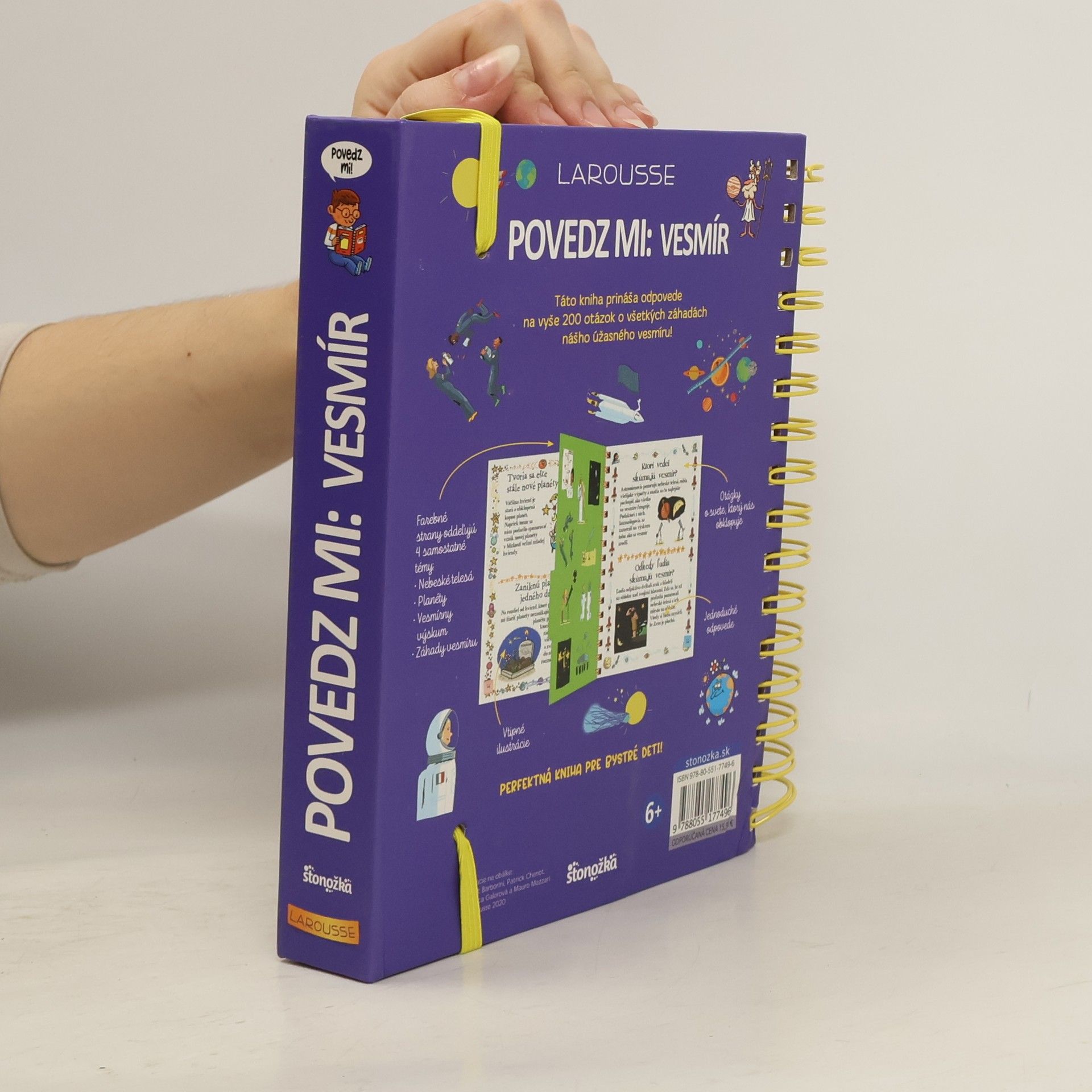 Perfektná kniha pre bystré hlavičky! Ďalšie pokračovanie obľúbenej a úspešnej série netradičných detských encyklopédií Povedz mi... tentoraz prináša odpovede na vyše 200 otázok o všetkých záhadách nášho úžasného vesmíru! Obsahuje štyri kapitoly: Nebeské telesá, Planéty, Vesmírny výskum a Záhady vesmíru. Pre čitateľov od 6 rokov Z francúzskeho originálu preložila Eva Corvest.