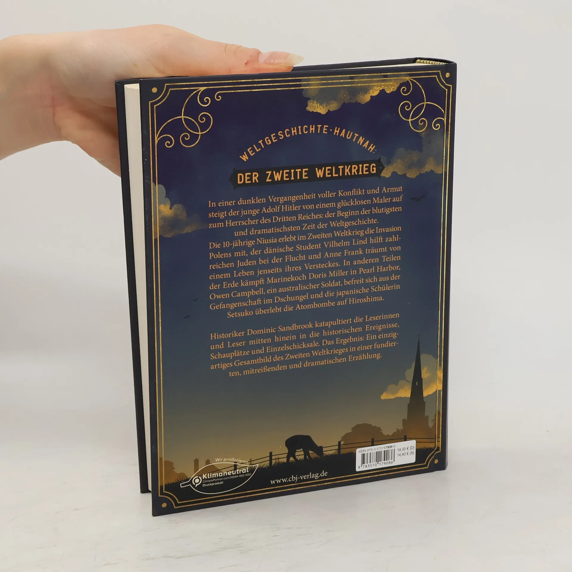 Weltgeschichte hautnah: Die Geschichte des Zweiten Weltkrieges global erzähltIn einer dunklen Vergangenheit voller Konflikt und Armut steigt der junge Adolf Hitler auf zum Herrscher des Dritten Reiches: der Beginn der blutigsten und dramatischsten Zeit der Weltgeschichte.Die 10-jährige Niusia erlebt im Zweiten Weltkrieg die Invasion Polens mit, der dänische Student Vilhelm Lind hilft zahlreichen Juden bei der Flucht und Anne Frank träumt von einem Leben jenseits ihres Versteckes. In anderen Teilen der Erde kämpft Marinekoch Doris Miller in Pearl Harbor, Owen Campbell, ein australischer Soldat, befreit sich aus der Gefangenschaft im Dschungel und die japanische Schülerin Setsuko überlebt die Atombombe auf Hiroshima.Historiker Dominic Sandbrook katapultiert die Leser mitten hinein in die historischen Ereignisse, Schauplätze und Einzelschicksale. Das Ergebnis: Ein einzigartiges Gesamtbild des Zweiten Weltkrieges in einer fundierten, mitreißenden und dramatischen Erzählung für Leser*innen ab 10 Jahren.