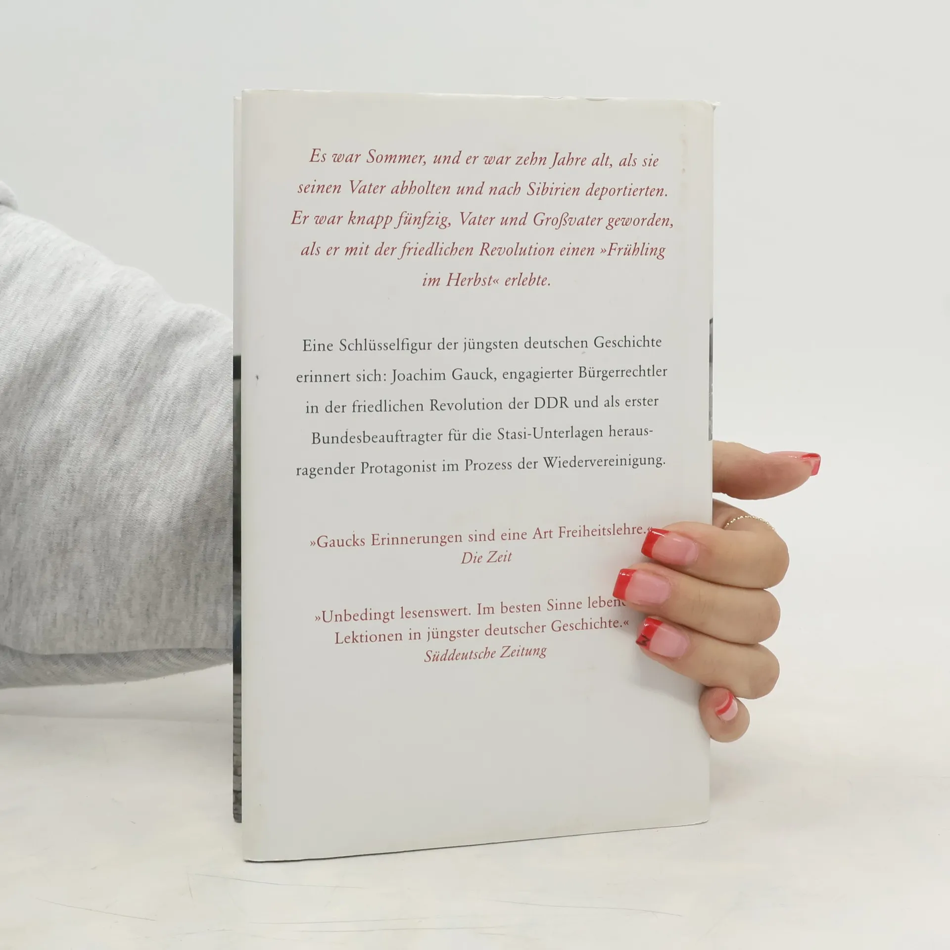 Der politische und sehr persönliche Rückblick eines friedlichen Revolutionärs Eine Schlüsselfigur der jüngsten deutschen Geschichte erinnert sich: Joachim Gauck, engagierter Systemgegner in der friedlichen Revolution der DDR und herausragender Protagonist im Prozess der Wiedervereinigung als erster Bundesbeauftragter für die Stasi-Unterlagen.Joachim Gauck verlebte seine Kindheit in einem Dorf an der Ostseeküste. Später studierte er Theologie in Rostock und fand seinen Weg in die Kirche in Mecklenburg. Distanz zum DDR-System prägte seine Tätigkeit von Anfang an. Wie selbstverständlich wurde er Teil einer kritischen Bewegung und schließlich zu einer Symbolfigur im Umbruch von 1989. Nach dem Mauerfall übernahm Gauck politische Verantwortung, er wurde Abgeordneter im ersten freien Parlament der DDR und erster Bundesbeauftragter für die Stasi-Unterlagen. Der Kampf gegen das Vergessen und Verdrängen blieb als Redner und Kommentator sein großes Thema, auch als er nach zehn Jahren aus dem Amt ausschied.Zu seinem 70. Geburtstag hat Joachim Gauck seine Erinnerungen aufgeschrieben. Ihm ist ein gleichermaßen politisches wie emotional berührendes Buch gelungen, in dem er in klaren Bildern die traumatisierende Erfahrung der Unfreiheit und das beglückende Erlebnis der Freiheit nachzeichnet und den schwierigen Übergang von erzwungener Ohnmacht zu einem selbstbestimmten Leben beschreibt.