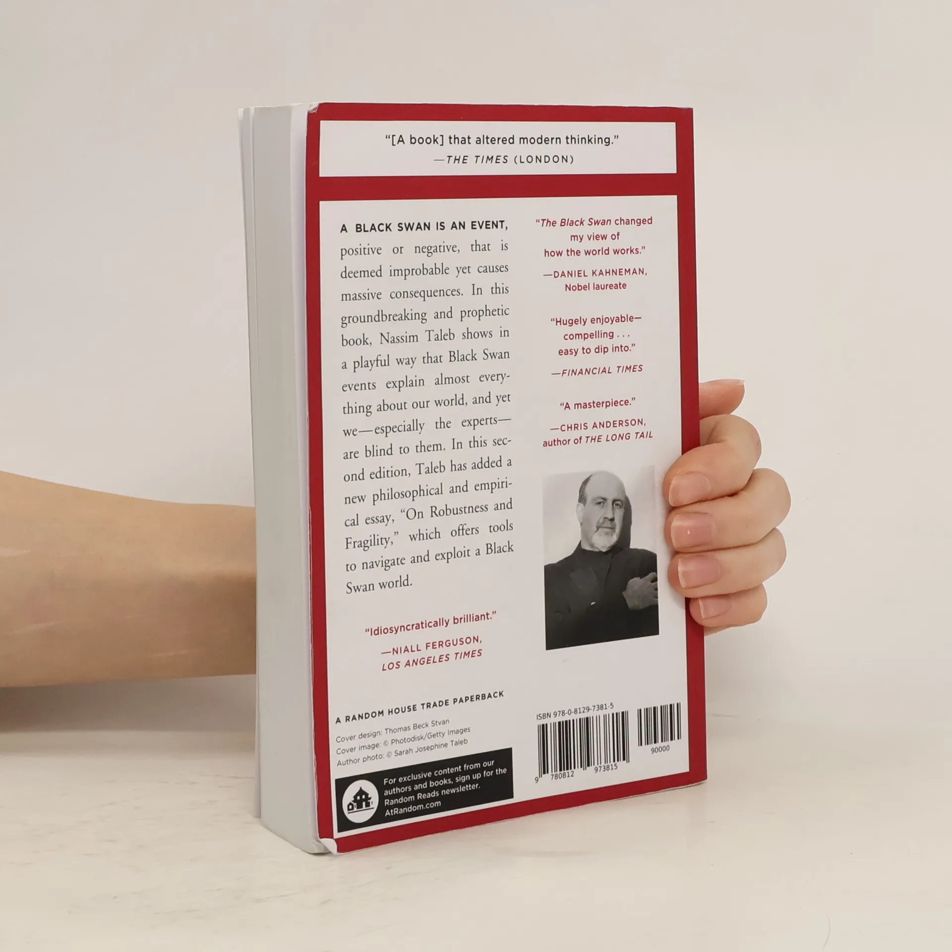 A black swan is an event, positive or negative, that is deemed improbable yet causes massive consequences. In this groundbreaking and prophetic book, Taleb shows in a playful way that Black Swan events explain almost everything about our world, and yet we—especially the experts—are blind to them. In this second edition, Taleb has added a new essay, On Robustness and Fragility, which offers tools to navigate and exploit a Black Swan world. *2nd Edition, With a new essay: "On Robustness and Fragility"