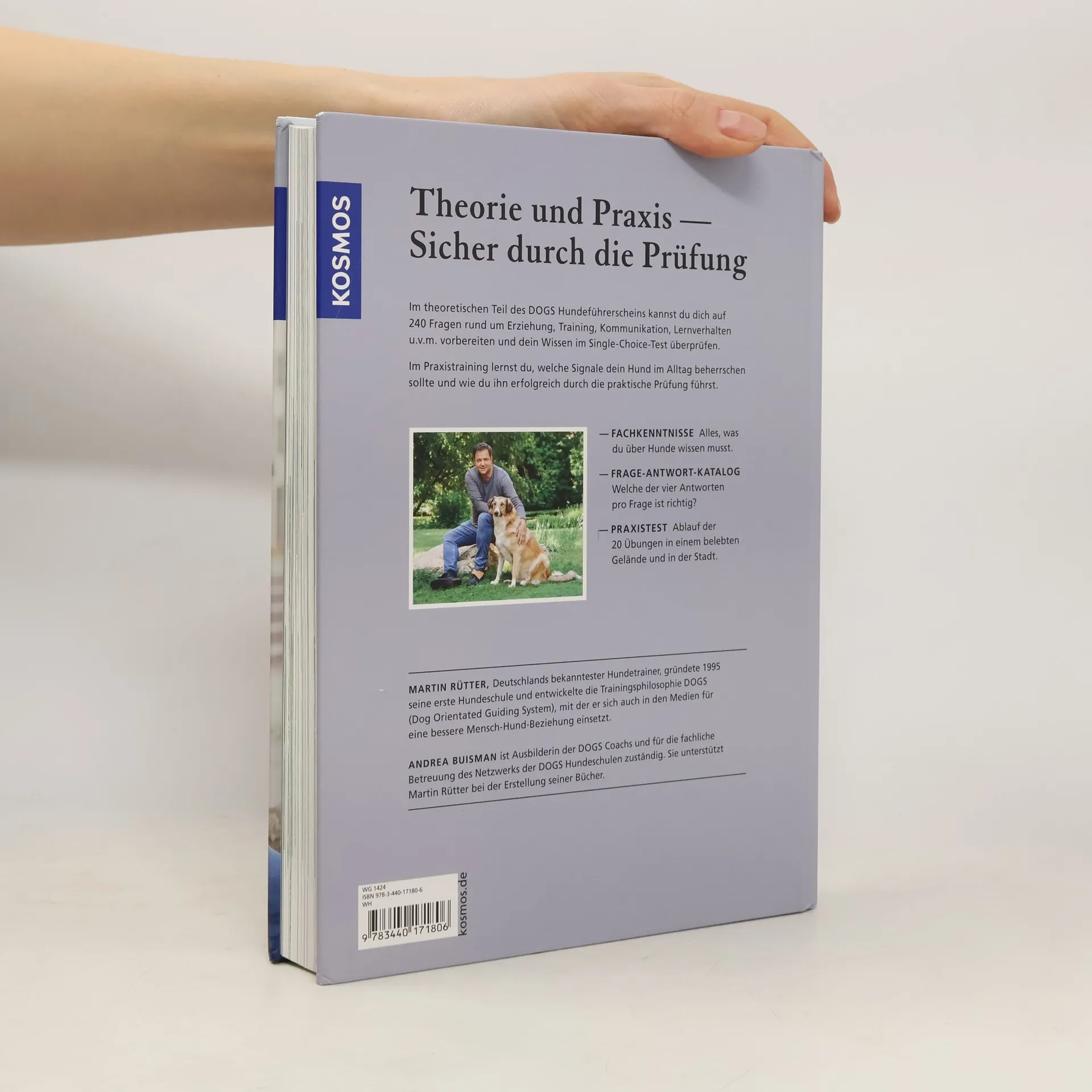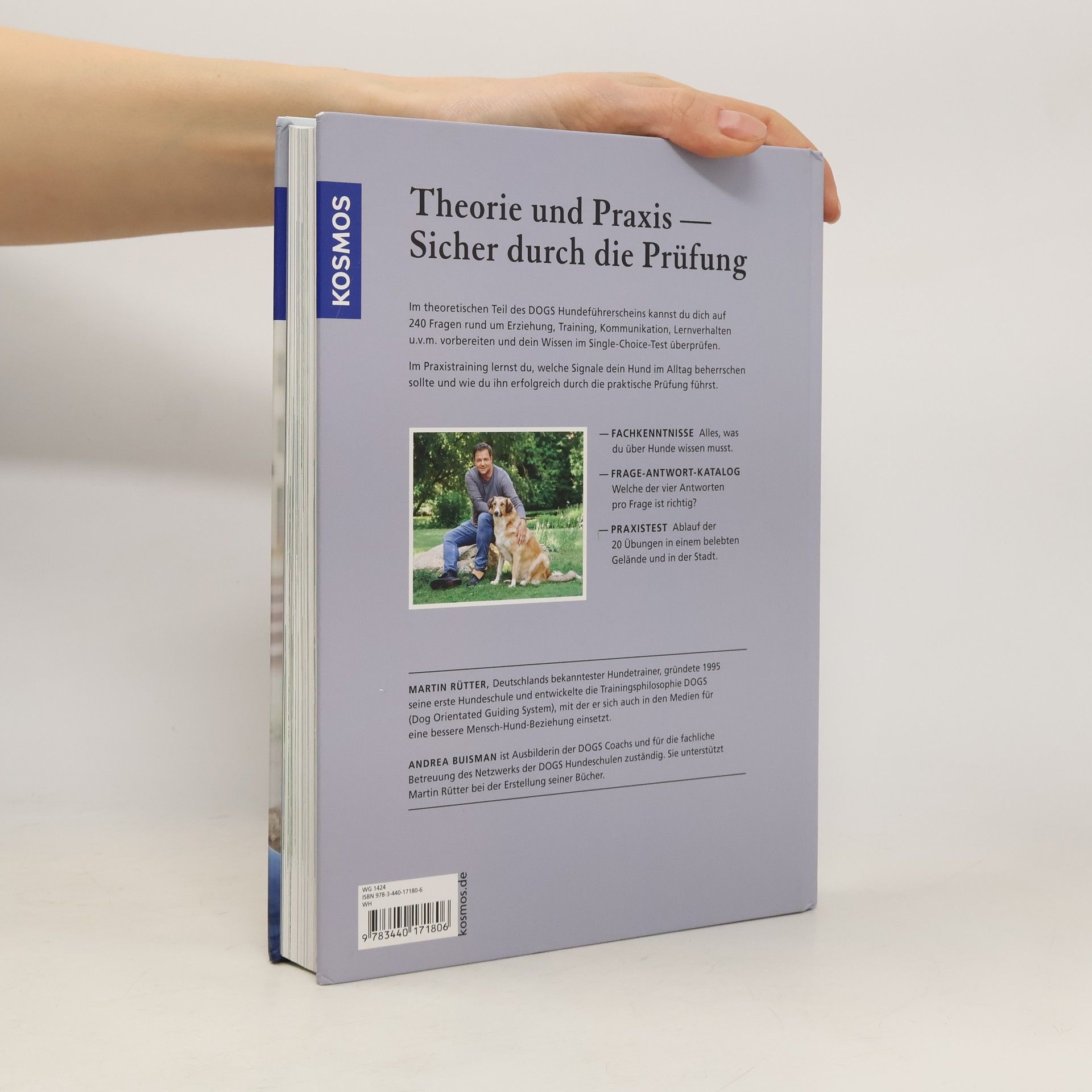 In Martin Rütters Netzwerk DOGS gibt es ein neues Angebot: den DOGS Hundeführerschein. 240 Fragen rund um Erziehung, Training, Kommunikation, Lernverhalten u.v.m. wurden auf neuesten wissenschaftlichen Erkenntnissen in einem Frage-Antwort-Katalog entwickelt und werden in einer theoretischen Prüfung abgefragt. Im praktischen Teil werden unter Anleitung von Coachs aus dem DOGS Netzwerk Grundsignale und Alltagssituationen geübt. Dieses Buch vermittelt alle Kursinhalte und unterstützt bestens bei der Vorbereitung auf die Prüfung.