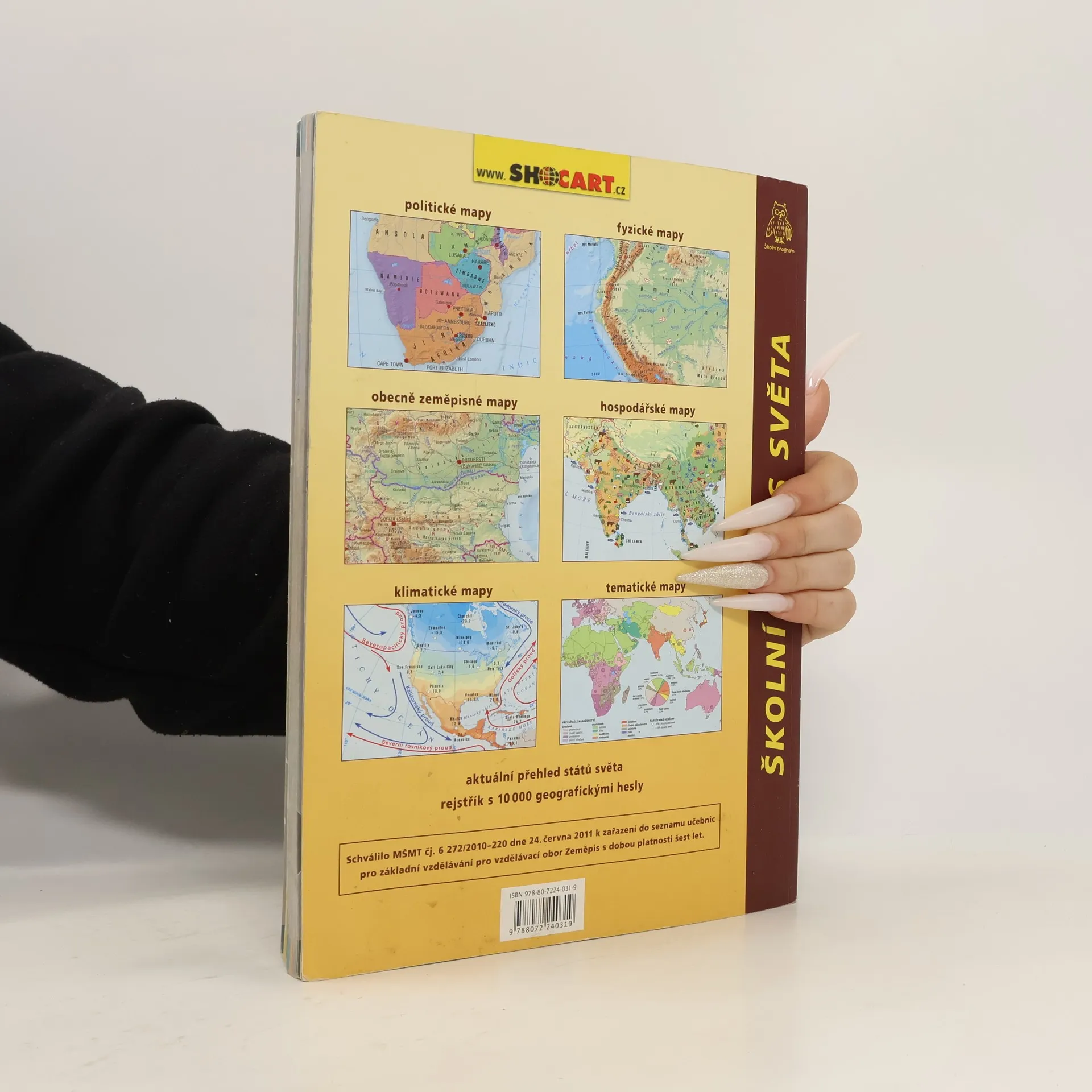 NOVÉ VYDÁNÍ - DOLOŽKA PLATNÁ DO r. 2023 Kompletní soubor obecně zeměpisných map představuje základní zdroj regionálních zeměpisných informací pro každou domácnost. Moderně zpracovaná tématická část obsahuje přehledné tématické mapy celého světa s neobvykle podrobnými geografickými tabulkami. Tématické mapy jednotlivých kontinentů se podrobněji věnují podnebí, hospodářství, hustotě obyvatelstva a cestovnímu ruchu. Nechybí zde rovněž aktuální přehled států se státními vlajkami a tabulky největších vrcholů, ostrovů, vodních toků, jezer a městských aglomerací. Atlas určený především žákům druhého stupně základních škol a gymnázií pro výuku zeměpisu má doložku MŠMT ČR. Největší rozsah obecně zeměpisných map Aktuální zpracování tématických map Aktuální lexikální přehledy kontinentů a států Šitá vazba zabraňující vypadávání listů !!!NOVINKA!!! Také ve verzi pro interaktivní tabule! Doložka Ministerstva školství