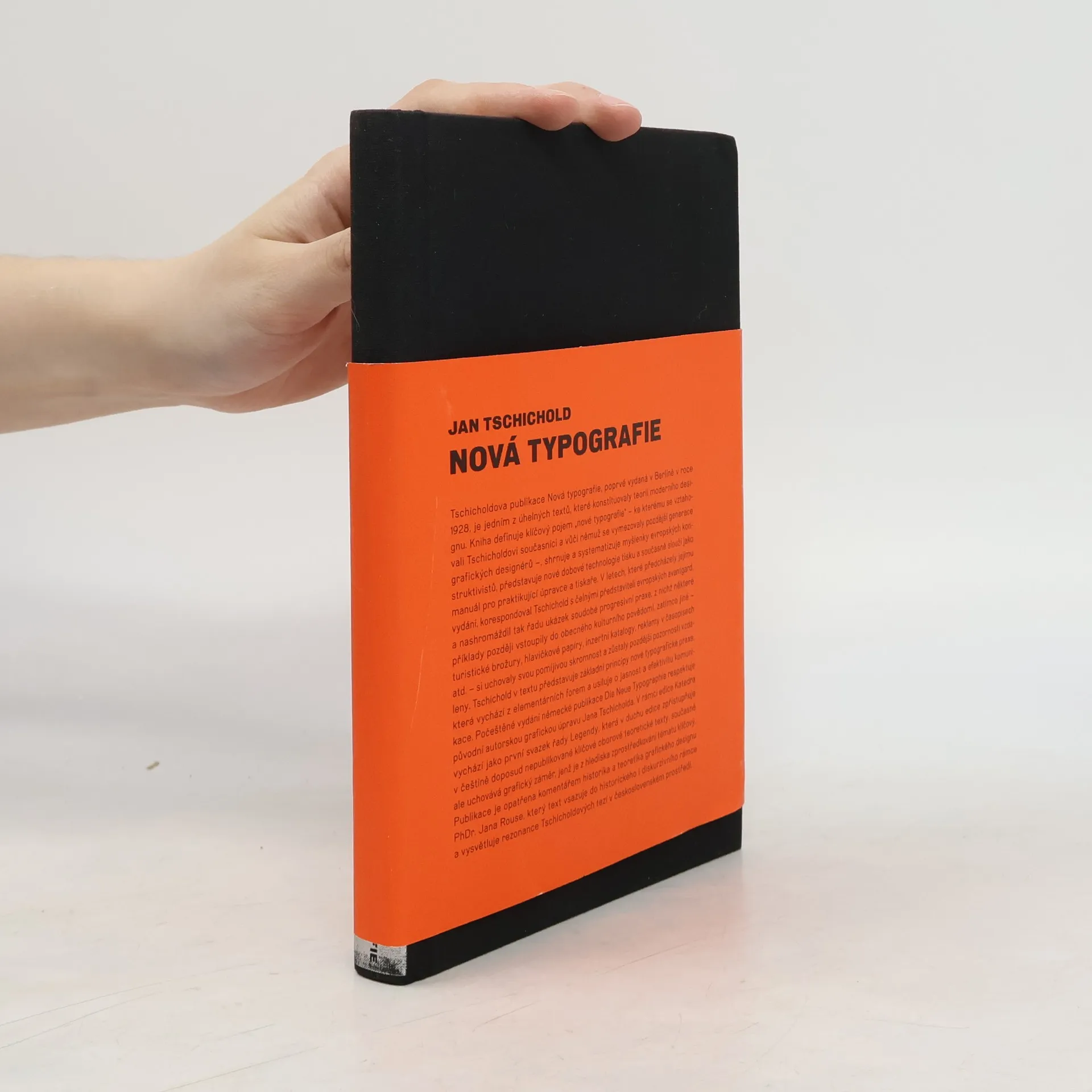 Tschicholdova publikace Die Neue Typographie vyšla poprvé v Berlíně roku 1928 a ihned se stala jedním z úhelných textů, které konstituovaly teorii moderního typografického designu a systematizovaly principy modernistické tvorby. Tschichold ve své knize představuje nejnovější dobové technologie tisku a na základě myšlenek evropských konstruktivistů definuje klíčový pojem „nová typografie“, kterou demonstruje a obhajuje na četných příkladech, jež mají zároveň posloužit jako manuál pro praktikující designéry a tiskaře. V letech, které předcházely vydání Nové typografie, korespondoval Tschichold s čelnými představiteli evropských avantgard (Kurt Schwitters, El Lisickij, Moholy-Nagy, Herbert Bayer, Piet Zwart, Ladislav Sutnar aj.), od nichž získával řady ukázek jejich soudobé progresivní praxe, z nichž některé později vstoupily do obecného kulturního povědomí. První české vydání respektuje původní Tschicholdovu grafickou úpravu a je doplněno předmluvou Jana Rouse. Překlad Eva Císlerová. Grafika Jan Tschichold (historická rekonstrukce originálu David Řeřicha).