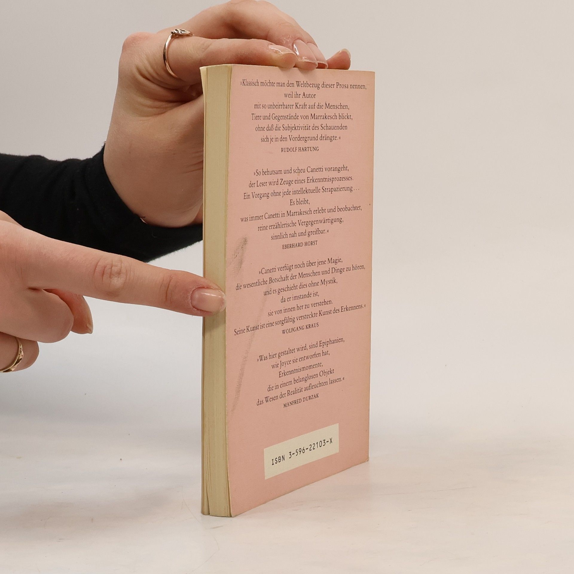 Der Zufall führte Canetti 1954 als Begleiter eines Filmteams in ein bestürzend fremdartiges Land - nach Marrakesch. Erst aus der Distanz, nach seiner Rückkehr nach London, skizzierte er die Eindrücke dieser Reise. Die Aufzeichnungen sind kein Reisebericht im klassischen Sinn. Es sind Miniaturen von atmosphärischen Erscheinungen einer orientalischen Großstadt. Elias Canetti streift durch die arabischen und jüdischen Viertel der Stadt, atmet die seltsamen Gerüche, beobachtet die feilschenden Händler in den Suks und die Verkäuferinnen duftenden Brotes, vernimmt die Stimmen der Blinden, Bettler und zungenlosen Krüppel in den Slums, spürt die hilflose Kreatürlichkeit und Nähe des Todes vor den Kamelen mit ihren Schlächtern, staunt über die vielen Gesichter armer Juden in der Mellah, wird Zeuge intimster menschlicherVerhältnisse, sieht Bosheit, Armut und Prostitution und spürt nur die Sehnsucht, die Sehnsucht nach einem besseren Leben.