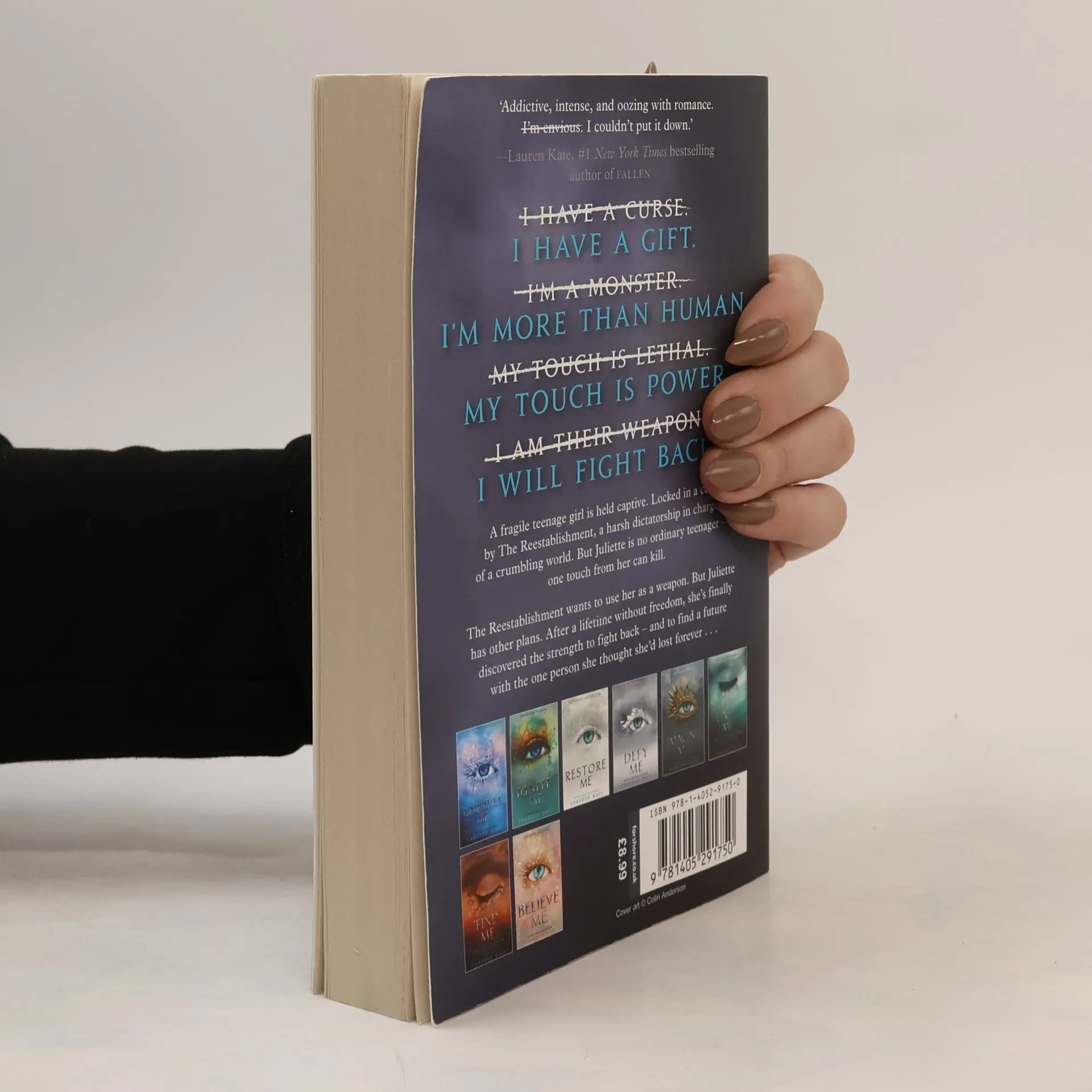 The irresistible first book in the gripping Shatter Me series, now featuring gorgeous jacket art to match the rest of the series, and including the Destroy Me novella! One touch is all it takes. One touch, and Juliette Ferrars can leave a fully grown man gasping for air. One touch, and she can kill. No one knows why Juliette has such incredible power. It feels like a curse, a burden that one person alone could never bear. But The Reestablishment sees it as a gift, sees her as an opportunity. An opportunity for a deadly weapon. Juliette has never fought for herself before. But when she’s reunited with the one person who ever cared about her, she finds a strength she never knew she had. The jacket of this new hardcover edition matches the beautiful artwork of the paperback edition. It also includes the Destroy Me novella, which is told from Warner’s point of view, and a brand-new author’s note. Perfect for fans who have followed the series from the beginning and craved a matching set of books, and for readers looking to check out the series before the highly anticipated release of Restore Me!