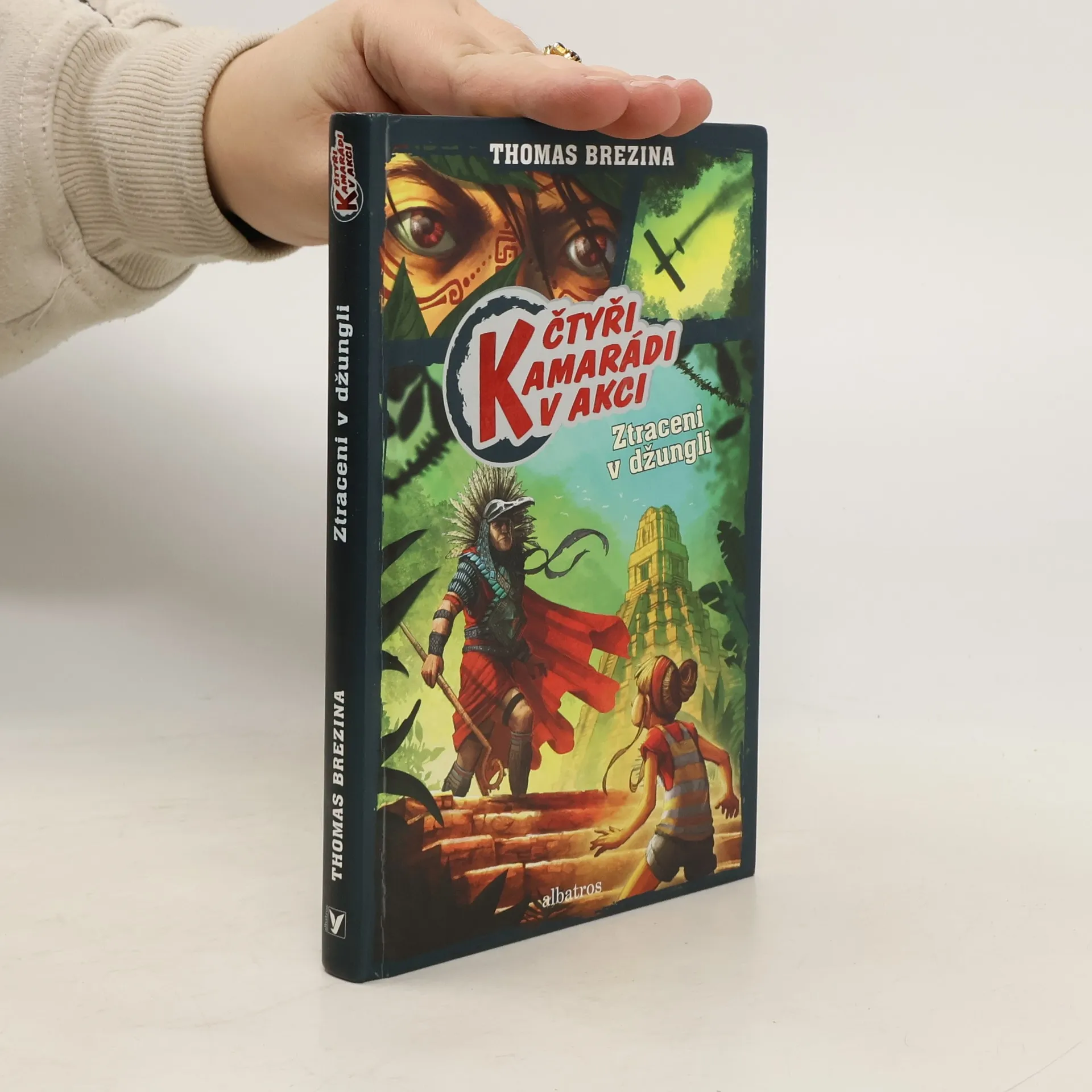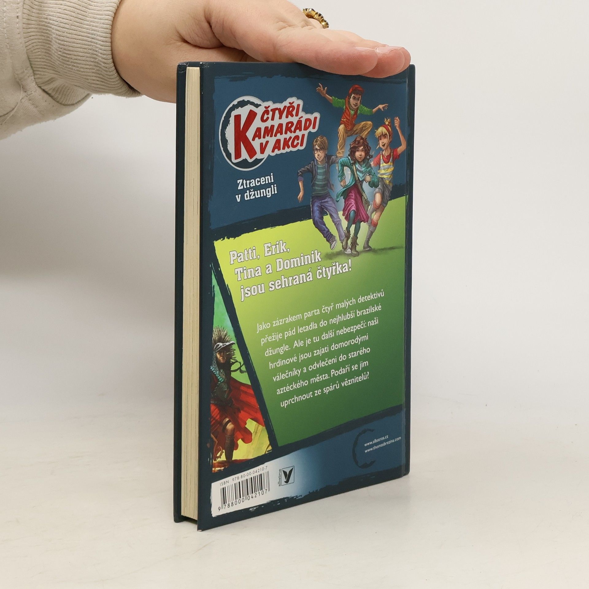 Přeneste se do světa starých Aztéků. Odehrává se tu příběh plný napětí! Parta čtyř malých detektivů přežije jako zázrakem pád letadla do nejhlubší brazilské džungle. Čeká je tu ale další nebezpečí: naši hrdinové jsou zajati domorodými válečníky a odvlečeni do starého aztéckého města. Podaří se jim uprchnout ze spárů věznitelů? Další detektivní příběh od Thomase Breziny.