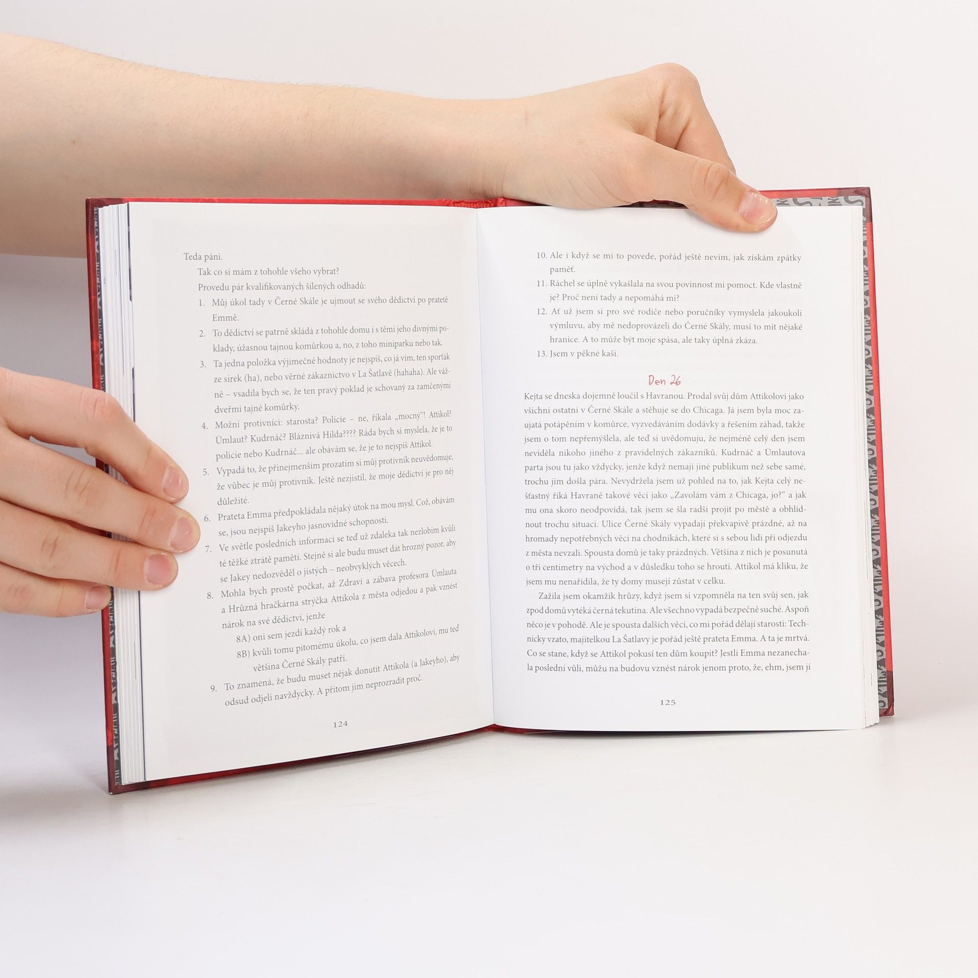 Emily Strange – charakteristika: 13 let. V tomto díle ztratí paměť, najde svoji pratetu, kočky, a dokonce svoji golemku! 13 věcí, které najdeš v prvním románu Emily Strange: 1. záhadu 2. úžasného golema 3. vychytané projektily 4. čtyři černé kočky 5. amnézii 6. kalamitní poker 7. zuřivé poníky 8. línýho policajta 9. seznamy o 13 položkách 10. generátor písečné bouře 11. dvojníky 12. tajnou misi 13. rybenky