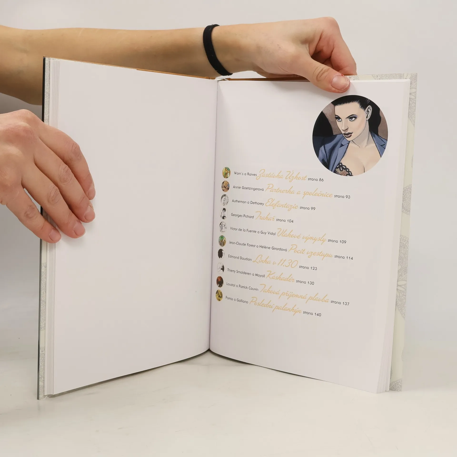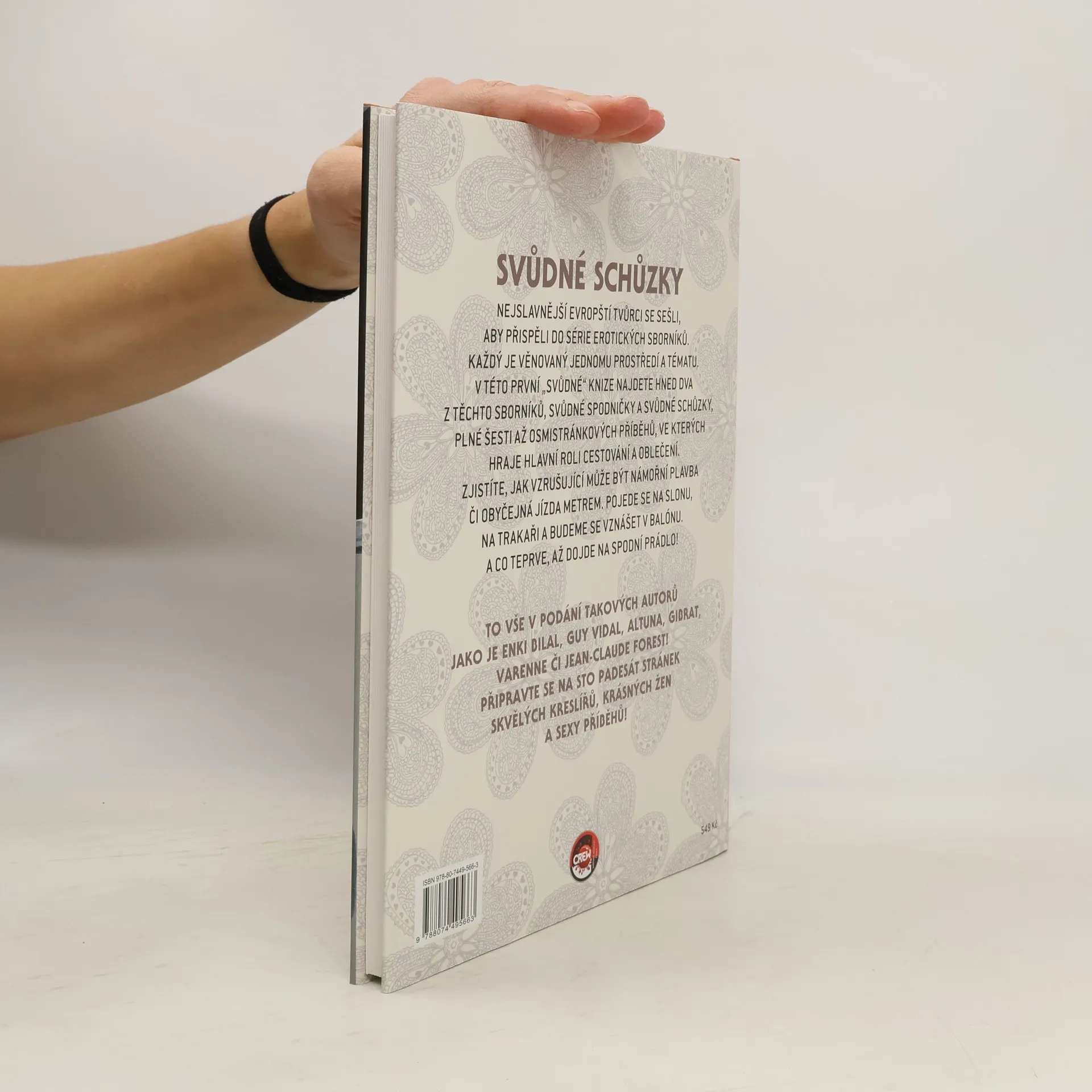 Nejslavnější evropští tvůrci se sešli, aby přispěli do série erotických sborníků. Každý je věnovaný jednomu prostředí a tématu. V této první "svůdné" knize najdete hned dva z těchto sborníků, Svůdné spodničky a Svůdné schůzky, plné šesti až osmistránkových příběhů, ve kterých hraje hlavní roli cestování a oblečení. Zjistíte, jak vzrušující může být námořní plavba či obyčejná jízda metrem. Pojede se na slonu, na trakaři a budeme se vznášet v balónu. A co teprve, až dojde na spodní prádlo! To vše v podání takových autorů jako je Enki Bilal, Guy Vidal, Altuna, Gibrat, Varenne či Jean-Claude Forest! Připravte se na sto padesát stránek skvělých kreslířů, krásných žen a sexy příběhů!