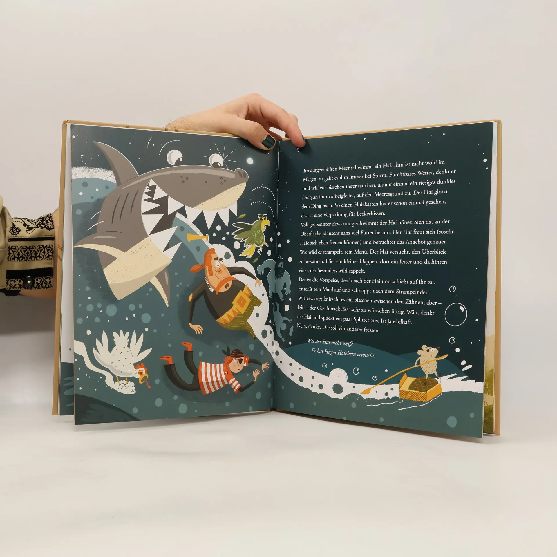 Diese witzige Vorlesegeschichte steckt voller Rätsel und Missgeschicke. Zwei Piratenbanden starten einen wilden Wettlauf, um den Schatz zu finden und den Sieger zum König zu krönen. Was die Piraten nicht wissen: Kapitänsneffe Theo und Papagei Flaute sind ihnen versehentlich einige Schritte voraus! Ursula Poznanskis turbulente Geschichte besticht mit Witz und Action. Fiete Koch hat die Bilder geschaffen, deren überbordende Details zusätzlich Spaß machen.
