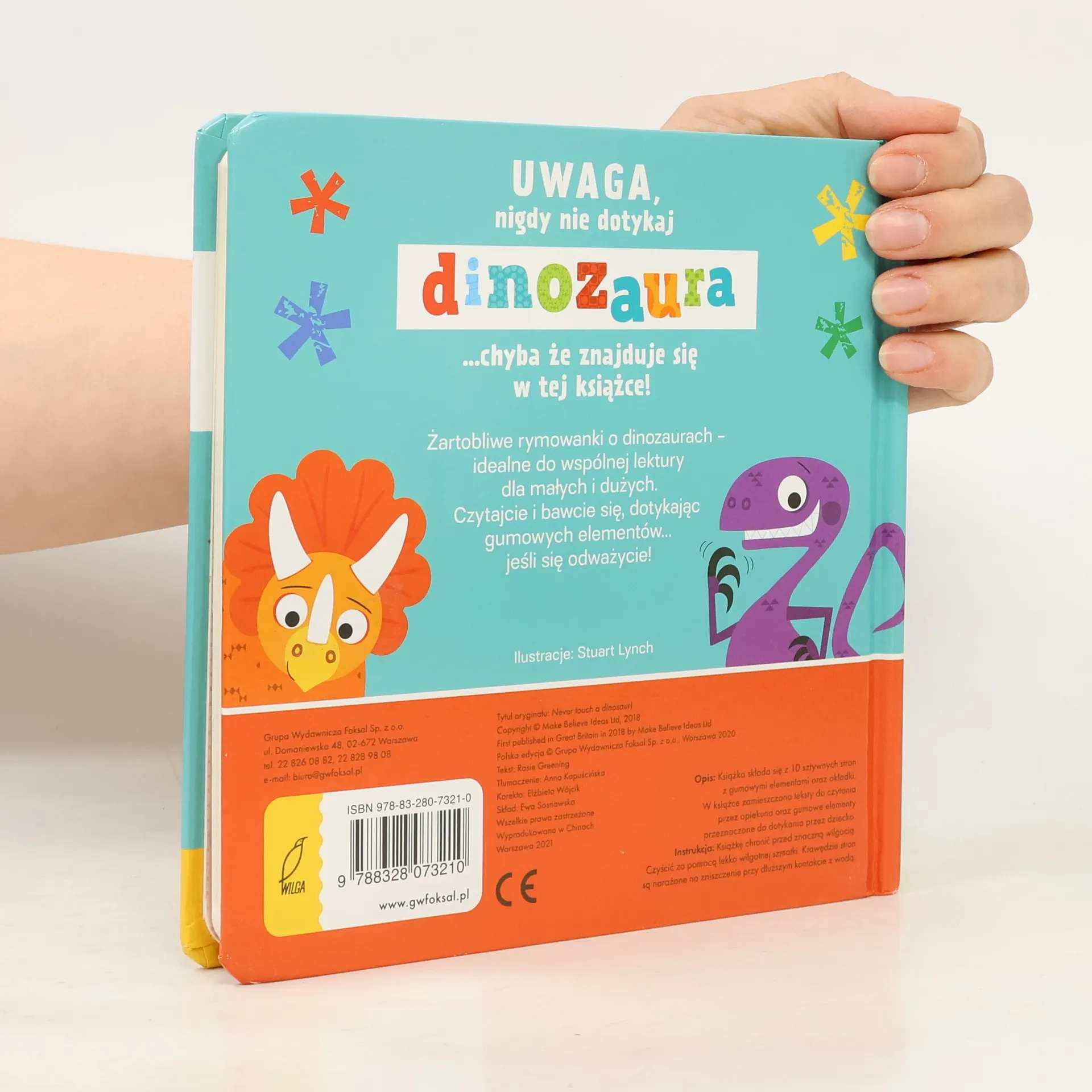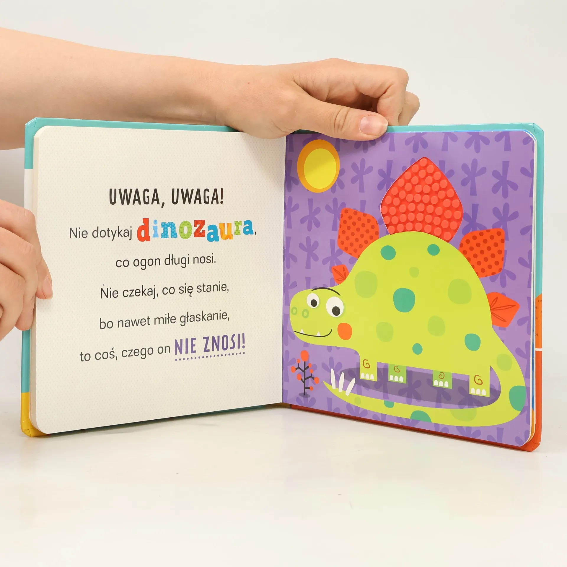 Seria książeczek z gumowymi elementami o zróżnicowanej fakturze. Zabawnym ilustracjom o żywych kolorach towarzyszą dowcipne rymowanki o przeróżnych stworach: robakach, smokach, dzikich zwierzętach, dinozaurach, których nie wolno dotykać… chyba że są na obrazkach. Doskonały sposób na rozwijanie zmysłu dotyku u maluchów. Lektura stworzona do wspólnego czytania.