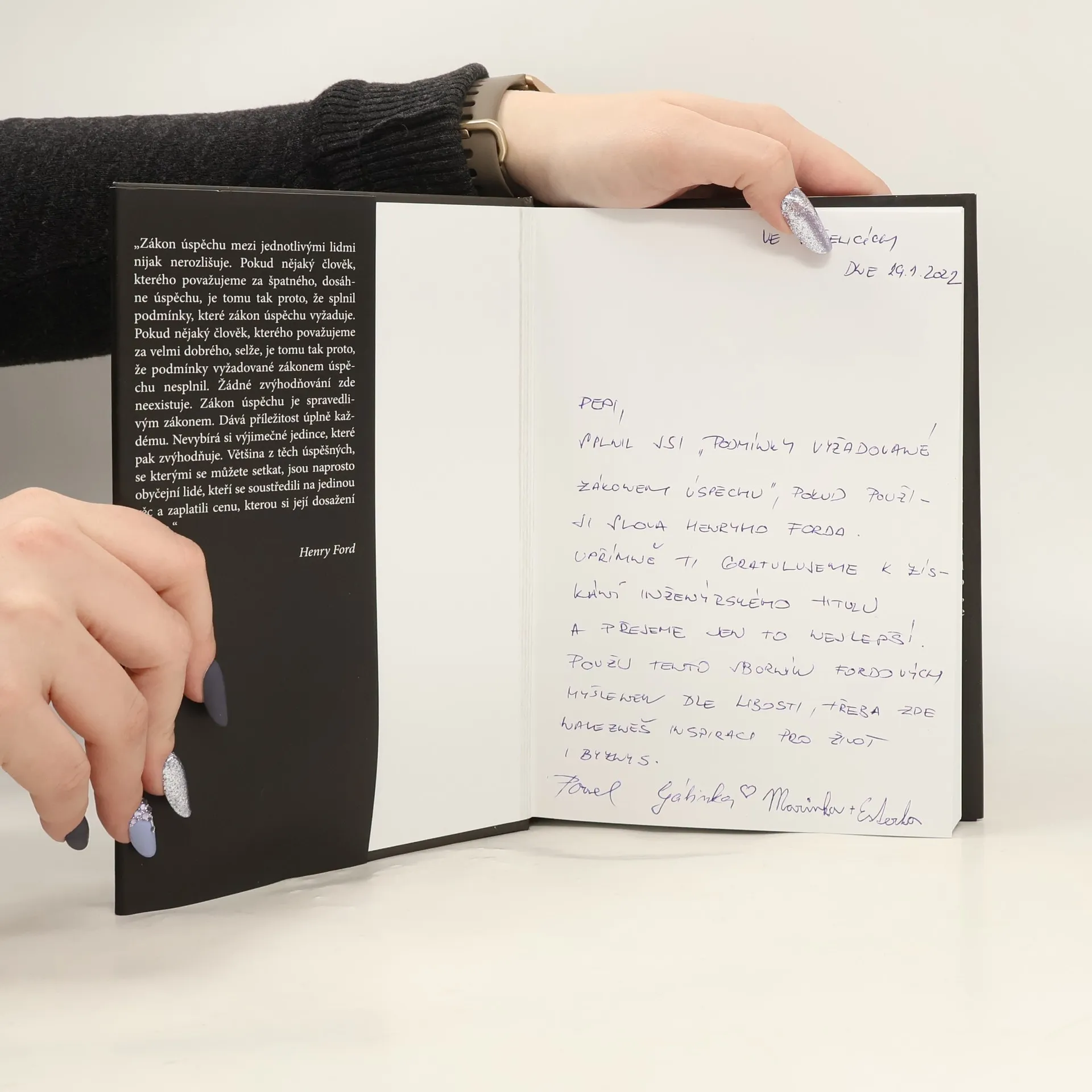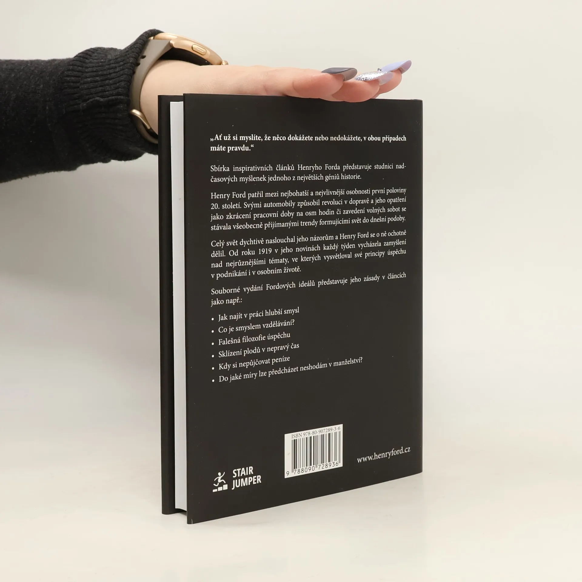Sbírka inspirativních článků Henryho Forda představuje studnici nadčasových myšlenek jednoho z největších géniů historie. Henry Ford patřil mezi nejbohatší a nejvlivnější osobnosti první poloviny 20. století. Svými automobily způsobil revoluci v dopravě a jeho opatření jako zkrácení pracovní doby na osm hodin či zavedení volných sobot se stávala všeobecně přijímanými trendy formujícími svět do dnešní podoby. Celý svět dychtivě naslouchal jeho názorům a Henry Ford se o ně ochotně dělil. Od roku 1919 v jeho novinách každý týden vycházela zamyšlení nad nejrůznějšími tématy, ve kterých vysvětloval své principy úspěchu v podnikání i v osobním životě. Souborné vydání Fordových ideálů představuje jeho zásady v článcích jako např.: • Jak najít v práci hlubší smysl • Co je smyslem vzdělávání? • Falešná filozofie úspěchu • Sklízení plodů v nepravý čas • Kdy si nepůjčovat peníze • Do jaké míry lze předcházet neshodám v manželství?