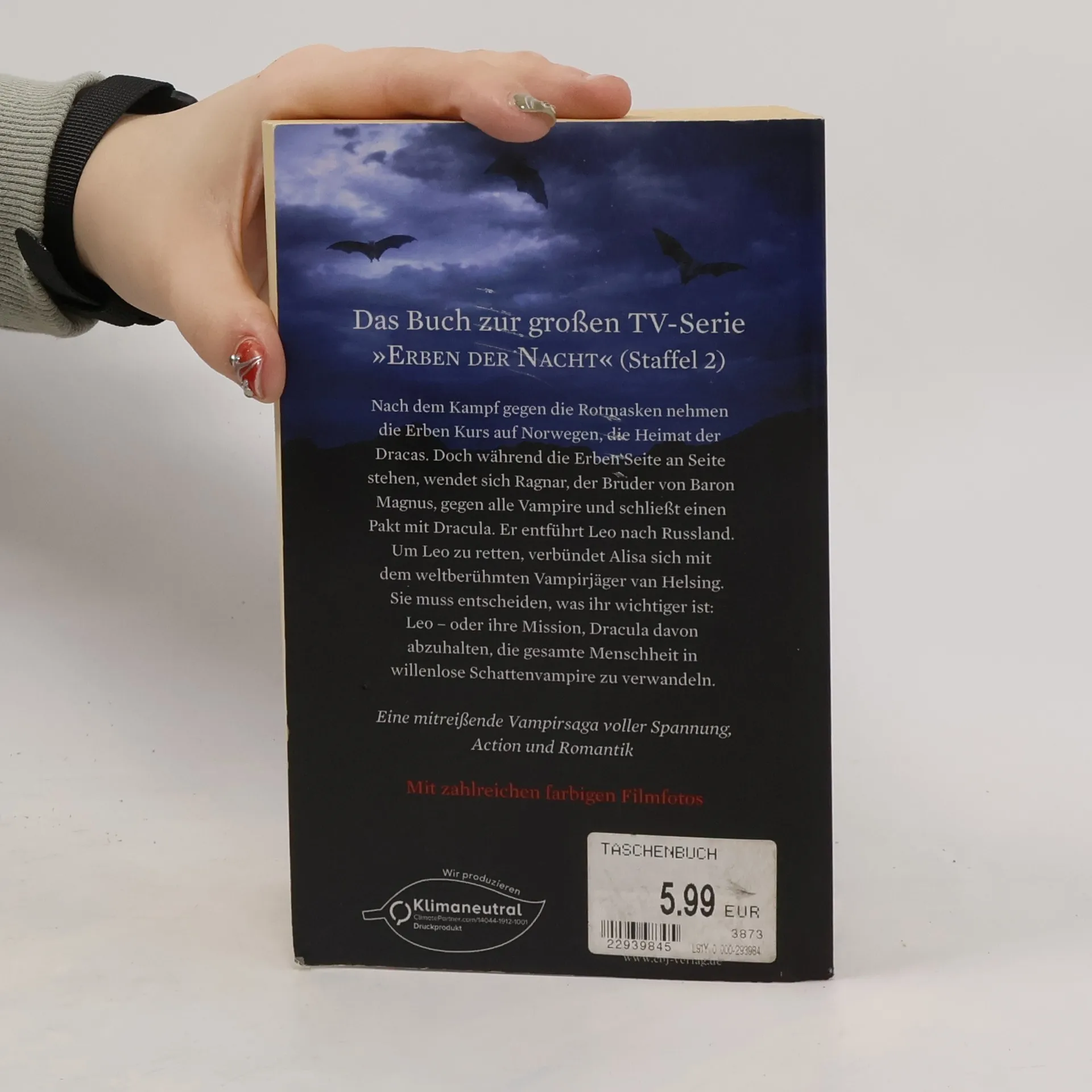 Das Buch zur 2. Staffel des TV-Serienhighlights »Erben der Nacht« Nach dem Kampf gegen die Rotmasken nehmen die Erben Kurs auf Norwegen, die Heimat der Dracas. Doch während die Erben Seite an Seite stehen, wendet sich Ragnar, der Bruder von Baron Magnus, gegen alle Vampire und schließt einen Pakt mit Dracula. Er entführt Leo nach Russland. Um Leo zu retten, verbündet Alisa sich mit dem weltberühmten Vampirjäger van Helsing. Sie muss entscheiden, was ihr wichtiger ist: Leo – oder ihre Mission, Dracula davon abzuhalten, die gesamte Menschheit in willenlose Schattenvampire zu verwandeln. Basierend auf der erfolgreichen Reihe »Die Erben der Nacht« von Ulrike Schweikert, erzählt nach der Handlung der TV-Serie mit farbigen Filmfotos im Innenteil Ausstattung: Mit farbigen Filmfotos aus der TV-Serie