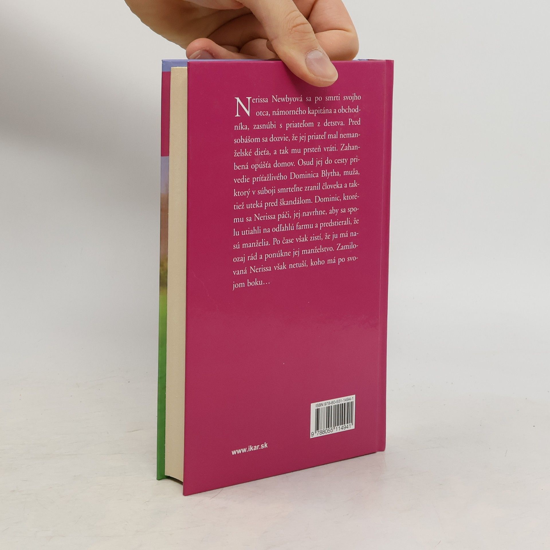 Nerissa Newbyová sa po smrti svojho otca, námorného kapitána a obchodníka, zasnúbi s priateľom z detstva. Pred sobášom sa dozvie, že jej priateľ mal nemanželské dieťa, a tak mu prsteň vráti. Zahanbená opúšťa domov. Osud jej do cesty privedie príťažlivého Dominica Blytha, muža, ktorý v súboji smrteľne zranil človeka a taktiež uteká pred škandálom. Dominic, ktorému sa Nerissa páči, jej navrhne, aby sa spolu utiahli na odľahlú farmu a predstierali, že sú manželia. Po čase však zistí, že ju má naozaj rád a ponúkne jej manželstvo. Zamilovaná Nerissa však netuší, koho má po svojom boku...