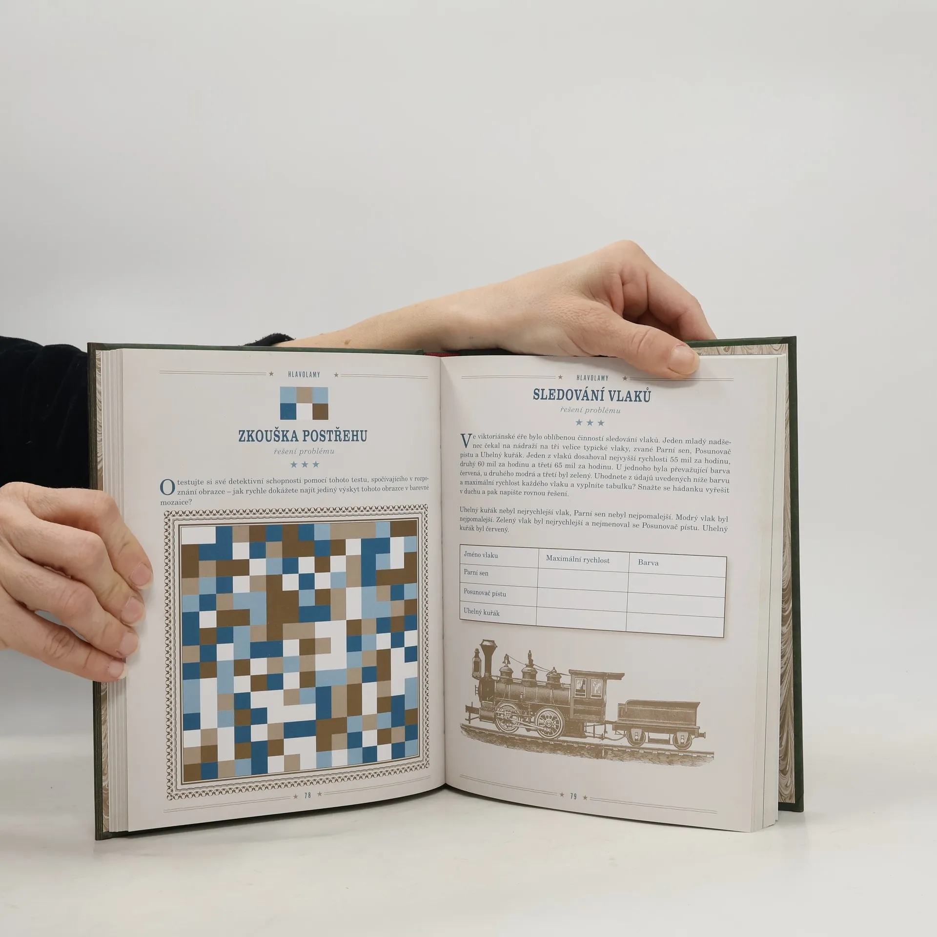 „Kniha hlavolamů“ je souborem různých hádanek, hlavolamů a logických problémů inspirovaných devatenáctým stoletím, zejména Sherlockem Holmesem a viktoriánskou érou. Na 227 stránkách se čtenář ocitá v kouzelném světě jednoho z nejslavnějších detektivů a prověřuje své schopnosti řešit záhady. Znalost příběhů od Conana Doyla není pro luštění většiny úloh nutná. Kromě logických problémů a klasických hádanek zde najdete úkoly na postřeh, paměť, matematické úlohy, ale také problémy laterálního myšlení a rozvoje kreativity, které jsou v této oblasti méně využívány. Na konci knihy jsou řešení většiny hlavolamů, kromě úloh na kreativitu, které vyžadují neomezenou fantazii. Obtížnost jednotlivých problémů není uvedena, čtenář si ji hodnotí sám, s výjimkou dvou úloh označených jako mimořádně obtížné, jejichž řešení je na nerozřezané dvoustránce. Knihu není nutné číst chronologicky; lze ji otevřít náhodně a řešit hlavolam na právě otevřené stránce, nebo vyhledávat úkoly podle typu či obtížnosti. Čtenář si může vybírat i podle času, který má k dispozici, protože některé hlavolamy lze vyřešit za pár minut, zatímco jiné vyžadují delší čas.
