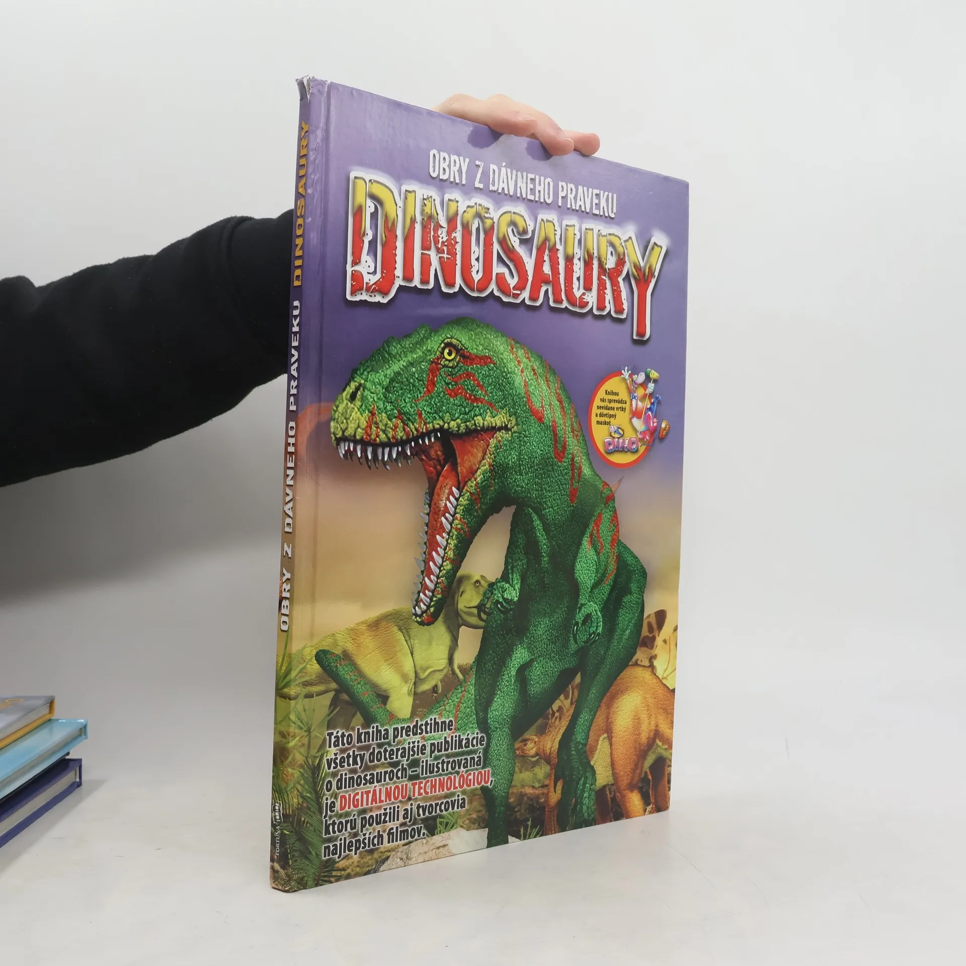 Táto kniha predstihne všetky doterajšie publikácie o dinosauroch – ilustrovaná je DIGITÁLNOU TECHNOLÓGIOU, ktorú použili aj tvorcovia najlepších filmov.V knihe nájdete jasné a často prekvapujúce odpovede na najčastejšie otázky, ktoré sa týkajú týchto obrov dávnej minulosti – od megalosaura až po seismosaura.• Boli dinosaury súčasníkmi človeka?• Vedel niektorý z nich plávať alebo lietať?• Žili všetky druhy spolu?• Vyhynuli všetky v rovnakom období?Dozviete sa podivuhodné veci, o ktorých ste doteraz ani nechyrovali.• Vedeli ste, že hrozný Tyrannosaurus nebol až taký zúrivý?• Počuli ste už, že Stegosaurus mal v sebe zabudovanú akúsi klimatizáciu, ktorou sa podľa potreby buď ochladzoval, alebo ohrieval?• Tušili ste, že Apatosaurus prehĺtal kamene, aby mu pomáhali pri trávení rastlinnej potravy, ktorej spásal tony?