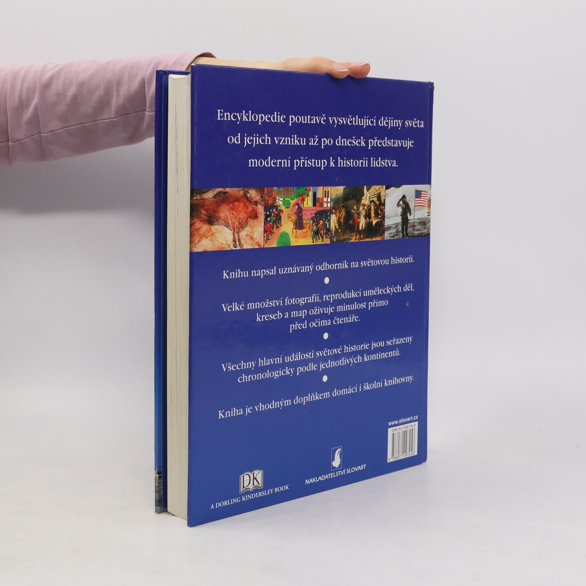 Encyklopedie poutavě vysvětlující dějiny světa od jejich vzniku až po dnešek představuje moderní přístup k historii lidstva. Kniha obsahuje velké množství fotografií, reprodukcí uměleckých děl, kreseb a map, které oživují minulost přímo před očima čtenáře.