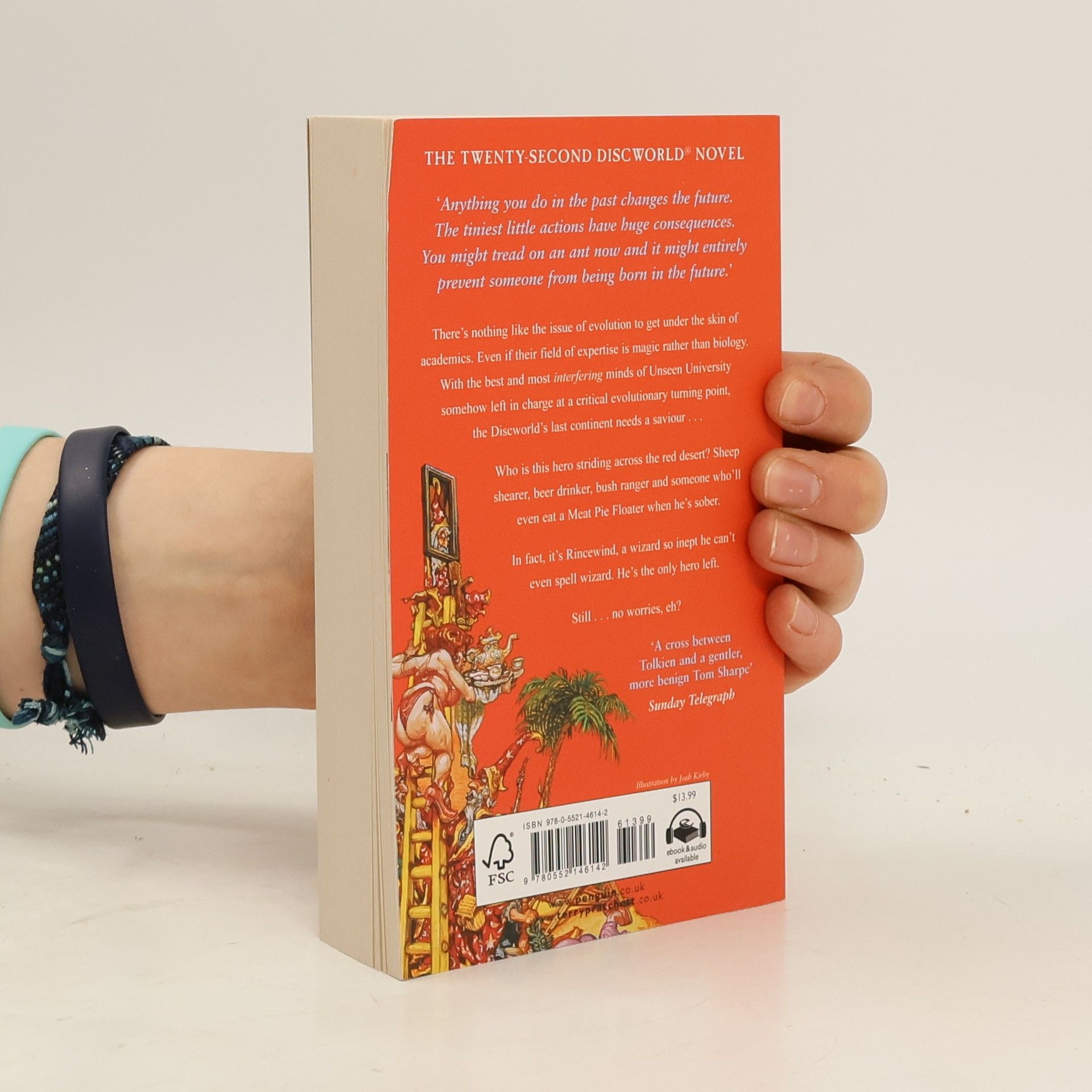 It's the Discworld's last continent and it's going to die in a few days, except... Who is this hero striding across the red desert? A man in a hat whose luggage follows him on little legs. Yes, it's Rincewind, the inept wizard who can't even spell wizard. He's the only hero left. Still...no worries, eh?
