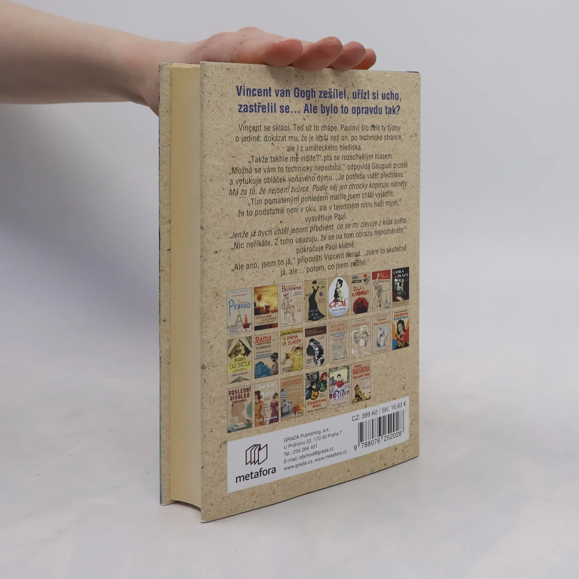Městečko Auvers-sur-Oise, 27. července 1890. Klopýtající Vincent van Gogh se vrací z pole, kde maloval, ale tentokrát je zraněný a smrtelně raněný. Vrací se do hostince pana Ravouxe, kde o dva dny později umírá před svým bratrem Theem. Vincentova slova „Zranil jsem se v polích…“ vedou k domněnce, že se pokusil o sebevraždu, ale autorka Marianne Jaeglé nabízí jiný pohled: Co když byl postřelen? Životopisný román rekonstruuje poslední dva roky van Goghova života a zpochybňuje tradiční teorie o jeho tragickém konci. Jaeglé čtenářům přibližuje nejen vnější okolnosti Vincentova života, ale i jeho vnitřní prožitky. Čtenáři se dostávají do Vincentovy kůže, prožívají jeho křivdy, extázi z barev a každodenních maličkostí. Autorka stručně zhmotňuje jeho slavná díla a zachycuje komplikovaný vztah s Paulem Gauguinem, který zklamal Vincentovy naděje na kolegiální partnerství. Tento nový pohled na známý příběh přináší průlom ve vnímání van Gogha, bourá představy o šílenci a ukazuje ho jako citlivého, plachého génia, umělce nepochopeného dobou a osamělého ve společnosti plné předsudků.