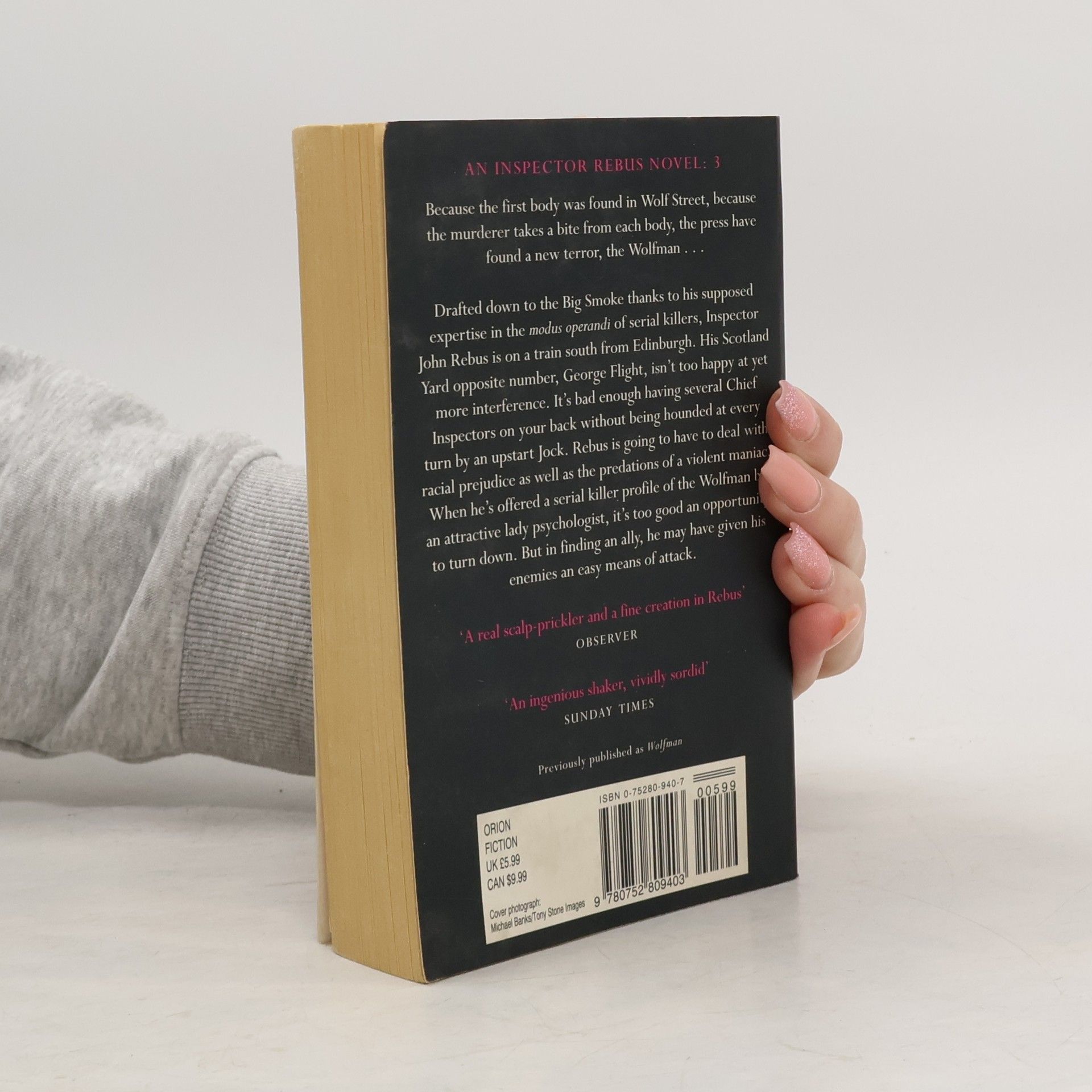 They call him the Wolfman - because he takes a bite out of his victims and because they found the first victim in the East End's lonely Wolf Street. Scotland Yard are anxious to find the killer and Inspector Rebus is drafted in to help, thanks to his supposed expertise in the modus operandi of serial killers. But his Scotland Yard opposite number, George Flight, isn't happy at yet more interference - it's bad enough having several Chief Inspectors on your back - and Rebus finds himself dealing with racial prejudice as well as the predations of a violent maniac. When Rebus is offered a serial killer profile of the Wolfman by an attractive female psychologist, it's too good an opportunity to miss. But in finding an ally, he may have given his enemies an easy means of attack.