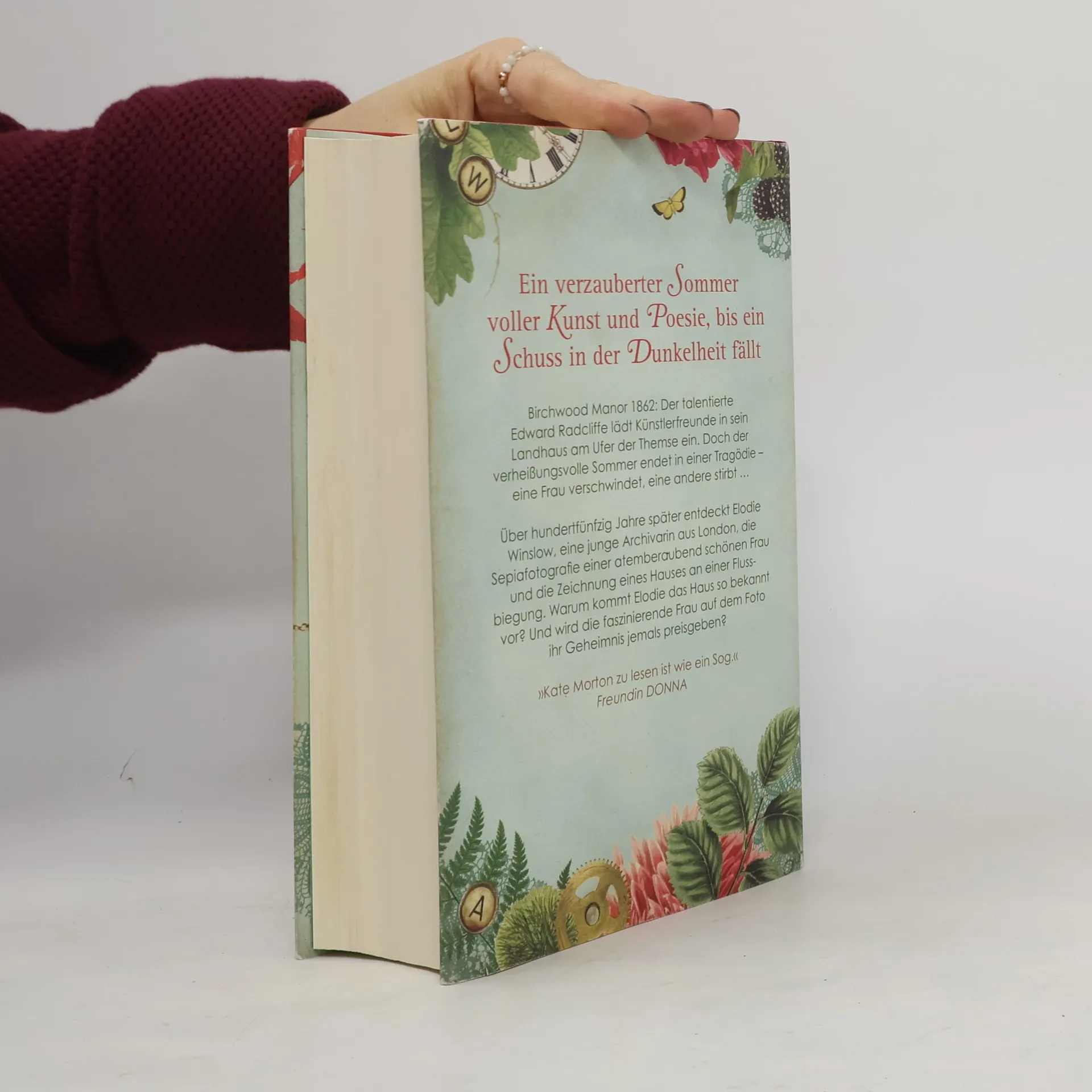 Birchwood Manor 1862: Der talentierte Edward Radcliffe lädt Künstlerfreunde in sein Landhaus am Ufer der Themse ein. Doch der verheißungsvolle Sommer endet in einer Tragödie – eine Frau verschwindet, eine andere stirbt … Über hundertfünfzig Jahre später entdeckt Elodie Winslow, eine junge Archivarin aus London, die Sepiafotografie einer atemberaubend schönen Frau und die Zeichnung eines Hauses an einer Flussbiegung. Warum kommt Elodie das Haus so bekannt vor? Und wird die faszinierende Frau auf dem Foto ihr Geheimnis jemals preisgeben?