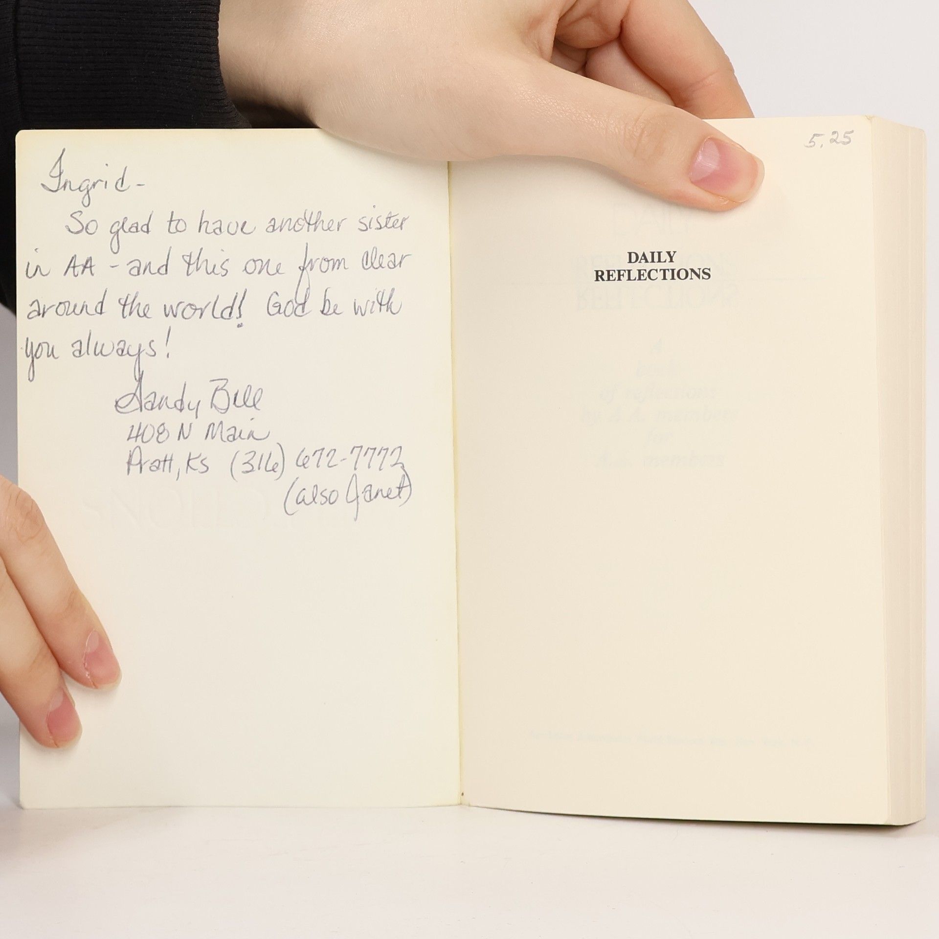 This is a book of daily meditations, one for each day of the year, on subjects related to alcoholism, sobriety, and spirituality.