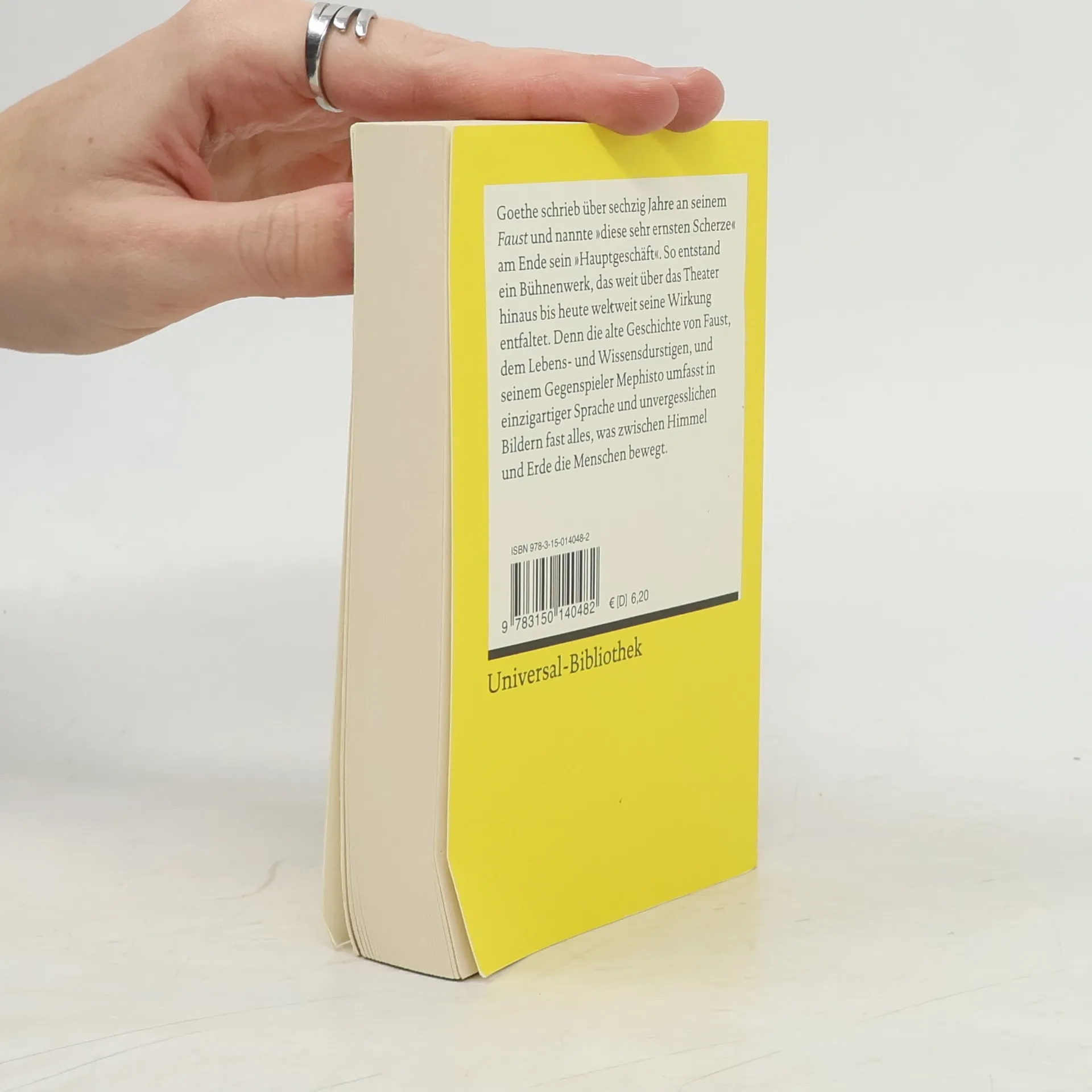 Eines der bedeutendsten Werke der deutschsprachigen Literatur in einer kompakten Gesamtausgabe. Goethe arbeitete über 60 Jahre an seinem Faust und bezeichnete diese „sehr ernsten Scherze“ als sein „Hauptgeschäft“. Hierbei entstand eines der komplexesten Werke der Weltliteratur. Die Doppelausgabe umfasst beide Teile der berühmten Tragödie über den Teufelspakt des Doktor Faustus mit Mephistopheles. Viele Zitate und Szenen sind kulturelles Allgemeingut geworden, wie die Gretchenfrage oder das Hexeneinmaleins. Goethes Lebenswerk zeigt, wie Faust im ersten Teil aus Wissensdurst und Lebenshunger dem Teufel verfällt und scheitert. Im zweiten Teil strebt Faust voller Tatendrang in die Welt, agiert als Geldbeschaffer, Kunstförderer, Liebender, Politiker und Herrscher über die Natur. Trotz vieler Misserfolge wird er am Ende gerettet. Diese Ausgabe ist besonders geeignet für Schülerinnen und Schüler, sowohl zum gemeinsamen Lesen im Unterricht als auch für Vorträge in verteilten Rollen. Die klare Gliederung in Szenen unterstützt dabei. Reclam bietet passende Textausgaben und Lektürehilfen für den Deutschunterricht sowie attraktive Unterrichtsmodelle für Lehrkräfte.