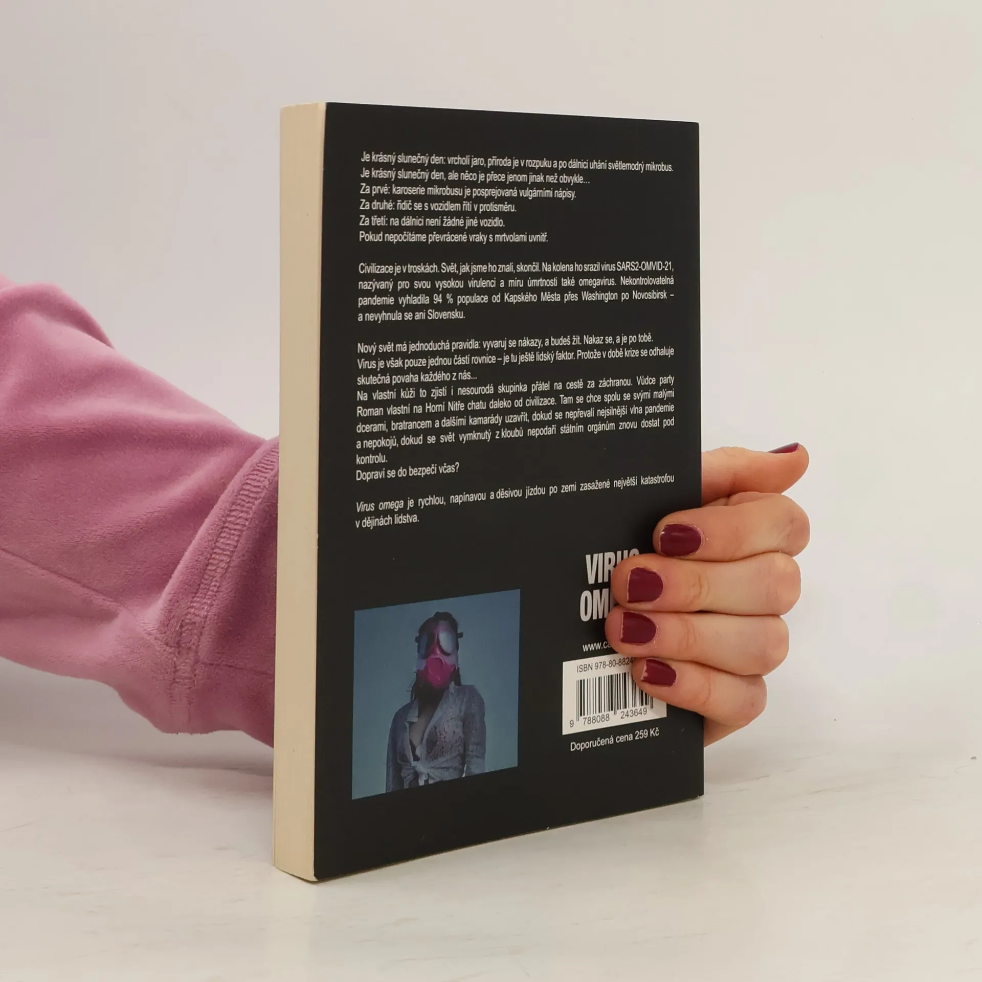 Je krásný slunečný den: vrcholí jaro, příroda je v rozpuku a po dálnici uhání světlemodrý mikrobus. Je krásný slunečný den, ale něco je přece jenom jinak než obvykle… Za prvé: karoserie mikrobusu je posprejovaná vulgárními nápisy. Za druhé: řidič se s vozidlem řítí v protisměru. Za třetí: na dálnici není žádné jiné vozidlo. Pokud nepočítáme převrácené vraky s mrtvolami uvnitř. Civilizace je v troskách. Svět, jak jsme ho znali, skončil. Na kolena ho srazil virus SARS2-OMVID-21, nazývaný pro svou vysokou virulenci a míru úmrtnosti také omegavirus. Nekontrolovatelná pandemie vyhladila 94 % populace od Kapského Města přes Washington po Novosibirsk – a nevyhnula se ani Slovensku. Nový svět má jednoduchá pravidla: vyvaruj se nákazy, a budeš žít. Nakaz se, a je po tobě. Virus je však pouze jednou částí rovnice – je tu ještě lidský faktor. Protože v době krize se odhaluje skutečná povaha každého z nás... Na vlastní kůži to zjistí i nesourodá skupinka přátel na cestě za záchranou. Vůdce party Roman vlastní na Horní Nitře chatu daleko od civilizace. Tam se chce spolu se svými malými dcerami, bratrancem a dalšími kamarády uzavřít, dokud se nepřevalí nejsilnější vlna pandemie a nepokojů, dokud se svět vymknutý z kloubů nepodaří státním orgánům znovu dostat pod kontrolu. Dopraví se do bezpečí včas? Virus omega je rychlou, napínavou a děsivou jízdou po zemi zasažené největší katastrofou v dějinách lidstva.