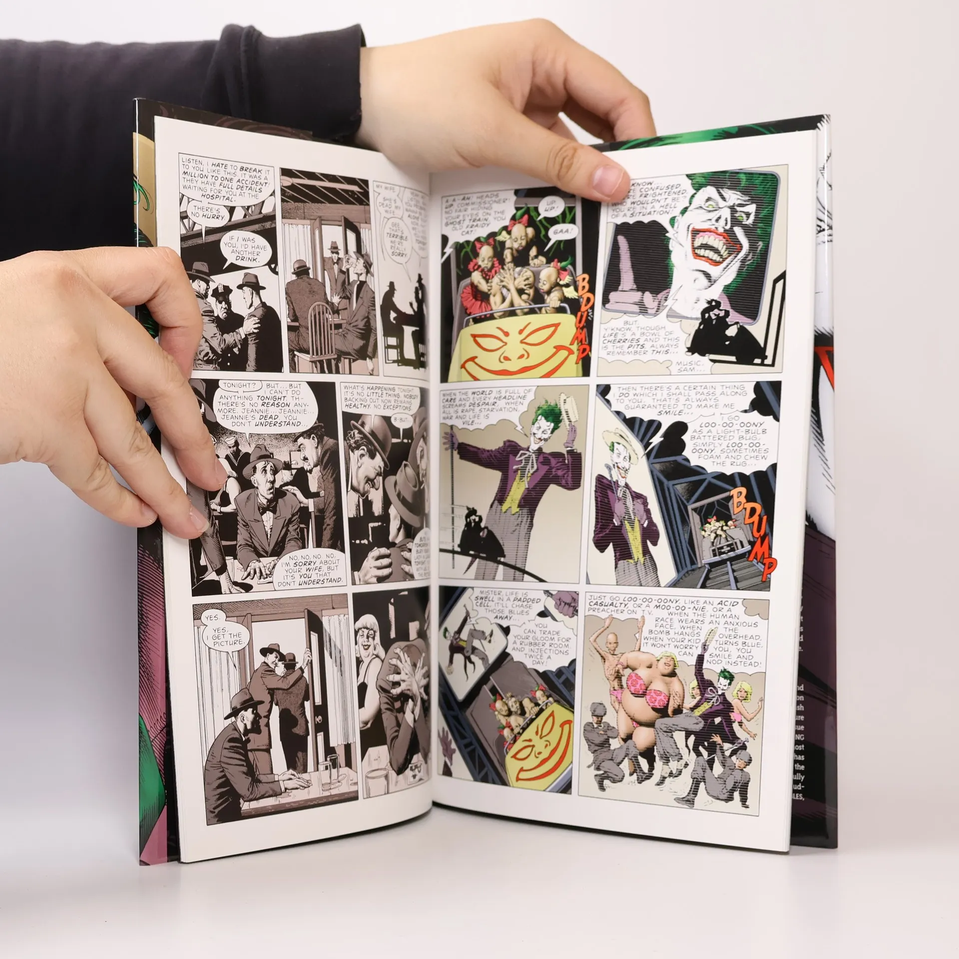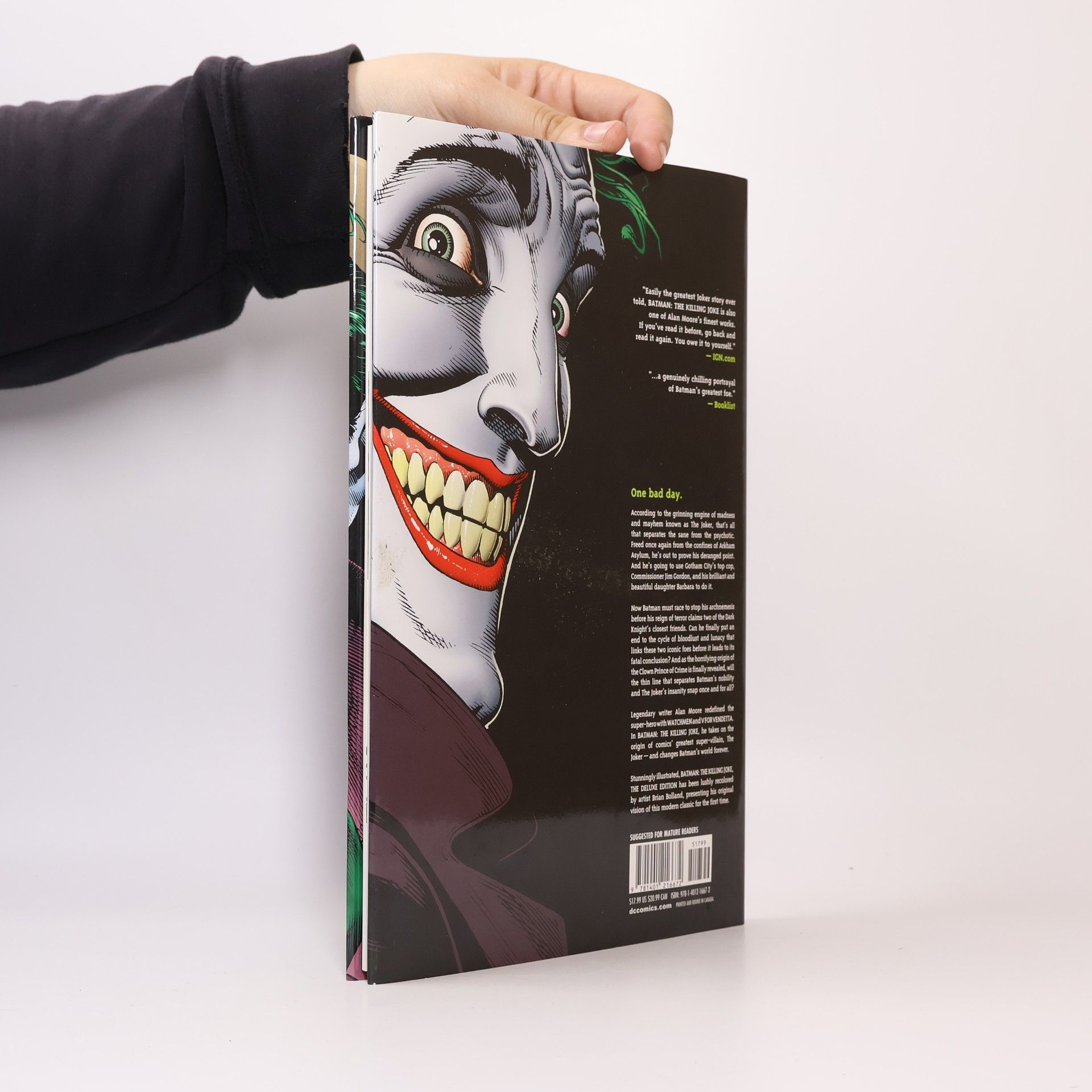 "One bad day. According to the grinning engine of madness and mayhem known as The Joker, that's all that separates the sane from the psychotic. Freed once again from the confines of Arkham Asylum, he's out to prove his deranged point. And he's going to use Gotham's top cop, Commissioner Jim Gordon, and his brilliant and beautiful daughter Barbara to do it. Now Batman must race to stop his archnemesis before his reign of terror claims two of the Dark Knight's closest friends. Can he finally put an end to the cycle of bloodlust and lunacy that links thes two iconic foes before it leads to a fatal conclusion? And as the horrifying origin of the Clown Prince of Crime is finally revealed, will the thin line that separates Batman's nobility and The Joker's insanity snap once and for all? '' -- dust jacket.
