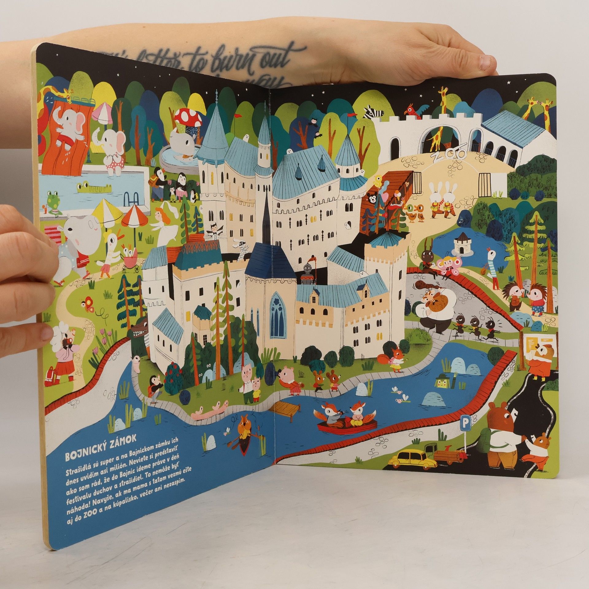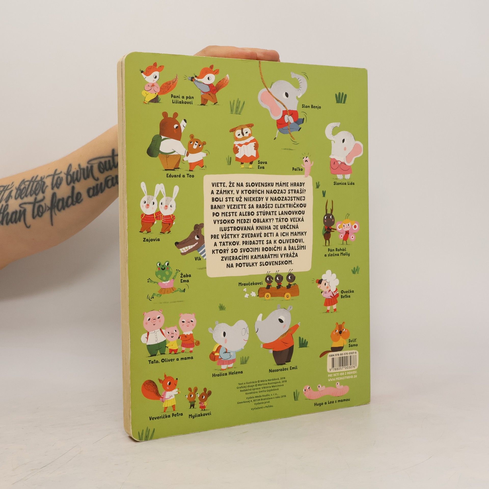 Veľká obrázková kniha pre deti a ich rodičov je plná pestrofarebných ilustrácii Slovenska. Pridajte sa k prasiatku Oliverovi, ktorý so svojimi rodičmi a ďalšími zvieracími kamarátmi vyráža na veľkú prázdninovú cestu! Objavte spolu s nimi slovenské hrady, zámky, hory, jazerá, alebo jaskyne. Zostúpte do banského múzea, a potom ponorte svoje unavené nôžky do liečivej kúpeľnej vody.Doplňujúce informácie:Kniha je vhodná pre deti od 2 rokov, vytlačená na tvrdých kartónových doskách (leporelo).
