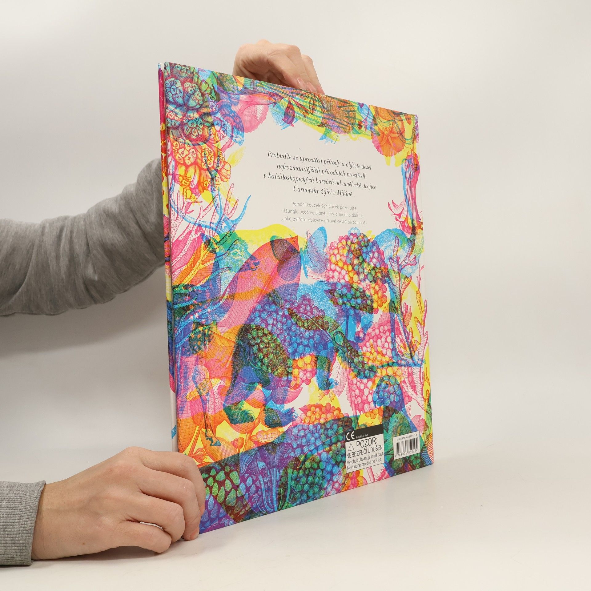 Probuďte se uprostřed přírody a objevte deset nejrozmanitějších přírodních prostředí v kaleidoskopických barvách od umělecké dvojice Carnovsky žijící v Miláně. Pomocí kouzelných čoček pozorujte džungli, oceány, pláně, lesy a mnoho dalšího. Jaká zvířata objevíte při své cestě divočinou?