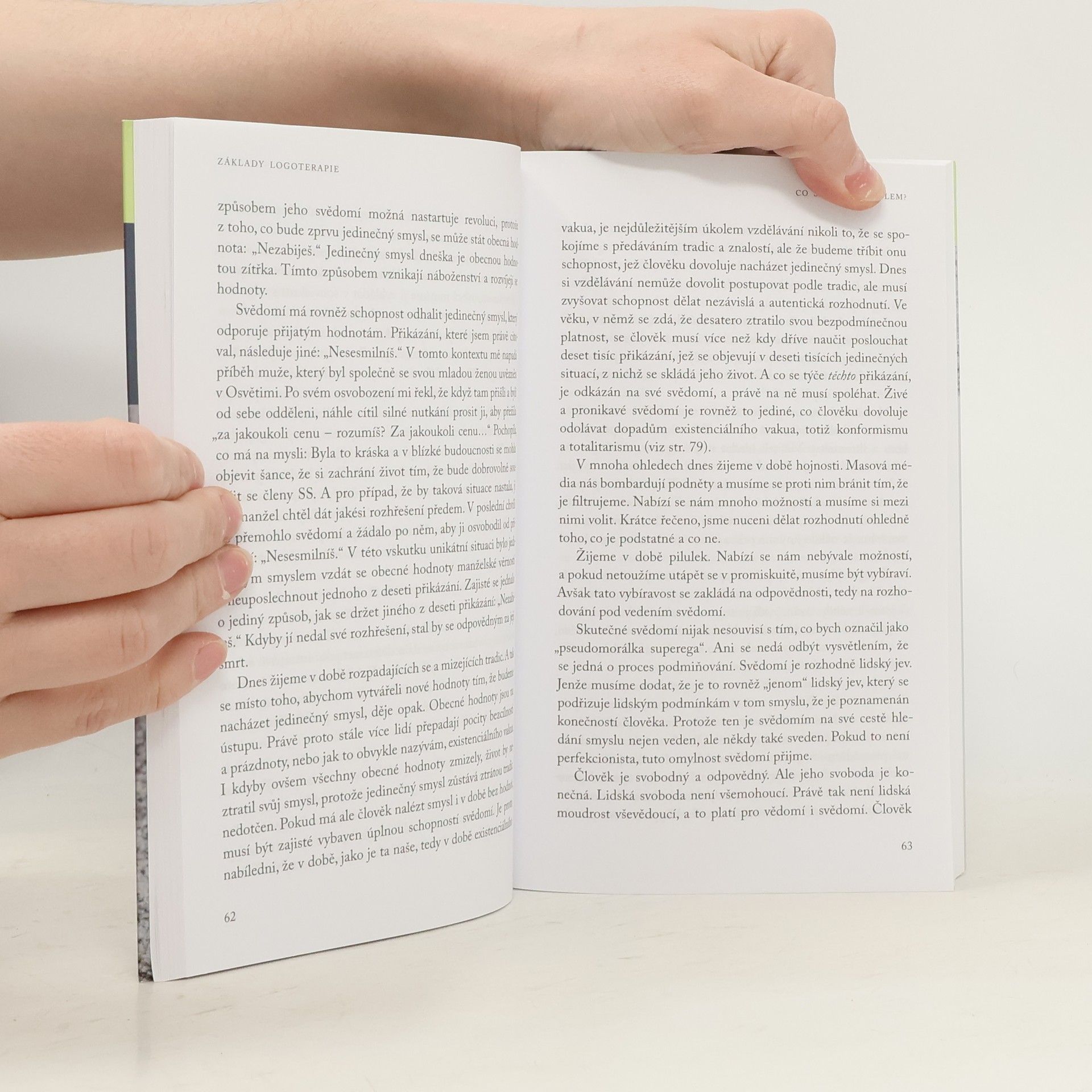 Základy a aplikace logoterapie. Tato kniha je výsledkem série přednášek, kterou měl autor v letním semestru roku 1966 na Jižní metodistické univerzitě v texaském Dallasu. Ústředním pojmem přednášek je logoterapie – psychoterapie zaměřená na hledání smyslu lidského života. Frankl zde zdůrazňuje systematickou povahu logoterapie, která předpokládá svobodu vůle, vůli ke smyslu a smysl života. Zaměřuje se na konkrétní logoterapeutické techniky a také na aplikační oblasti logoterapie, jež léčí různé typy neuróz. Logoterapie je kladena do kontextu jiných psychoterapeutických škol a závěrečná kapitola knihy se věnuje i jejímu vztahu k teologii.