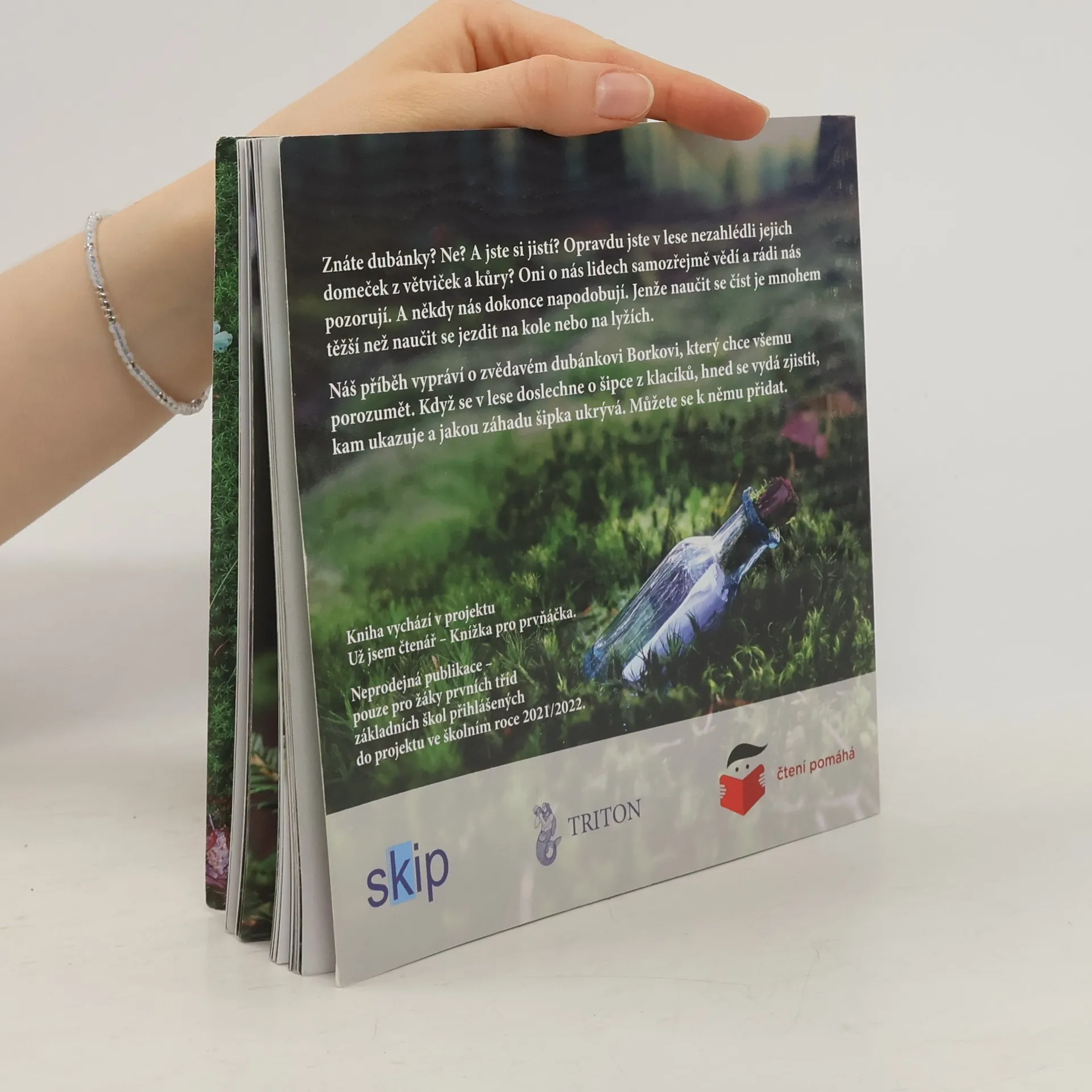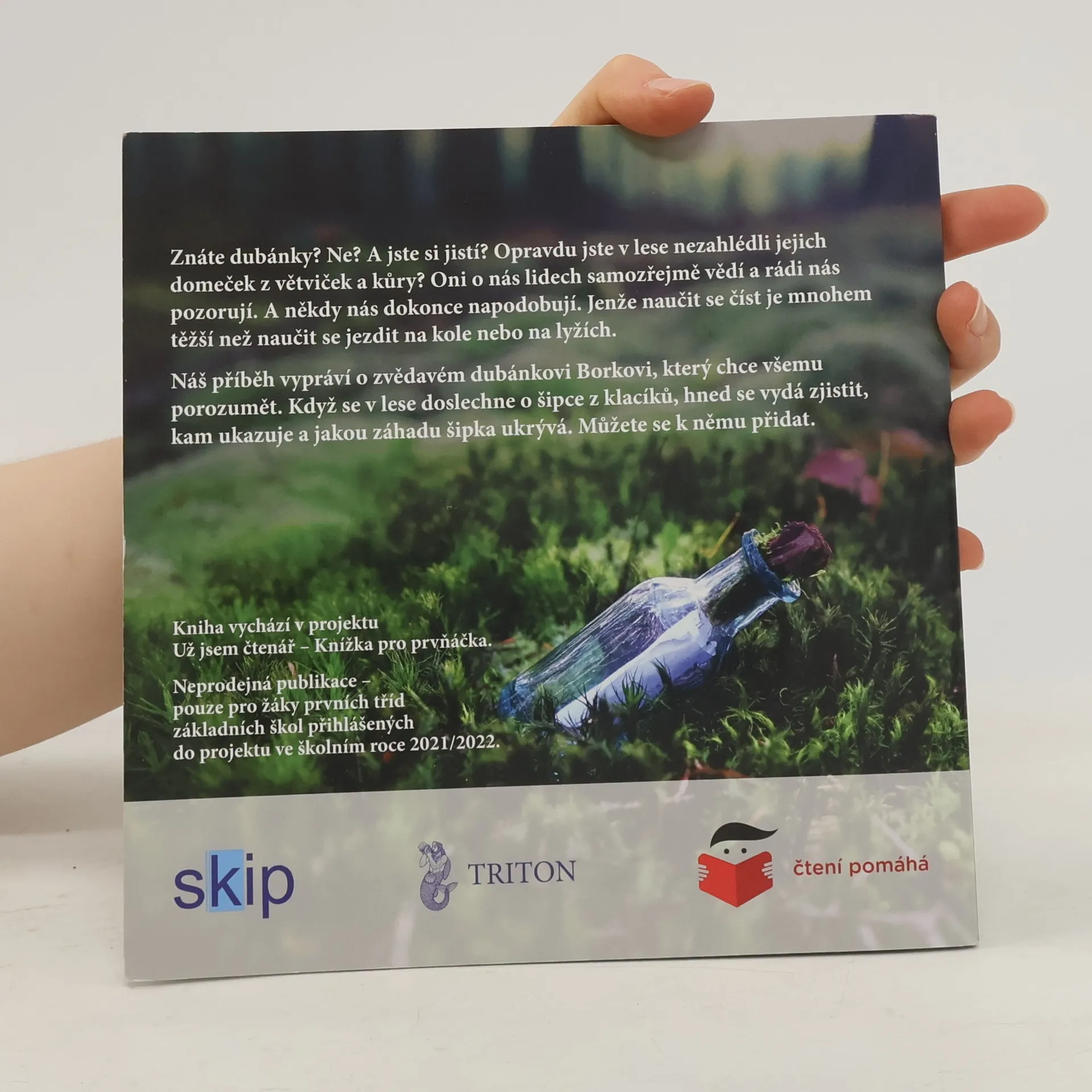 Znáte dubánky? Ne? A jste si jistí? Opravdu jste v lese nezahlédli jejich domeček z větviček a kůry? Oni o nás lidech samozřejmě vědí a rádi nás pozorují. A někdy nás dokonce napodobují. Jenže naučit se číst je mnohem těžší než se naučit jezdit na kole nebo na lyžích. Náš příběh vypráví o zvědavém dubánkovi Borkovi, který chce všemu porozumět. Když se v lese doslechne o šipce z klacíků, hned se vydá zjistit, kam ukazuje a jakou záhadu šipka ukrývá. Můžete se k němu přidat. Příběh z dubánčího světa doprovázejí úžasné fotky Petra Václavka. Vydáno exkluzivně v projektu "Knížka pro prvňáčka", tak zatím neprodejné.