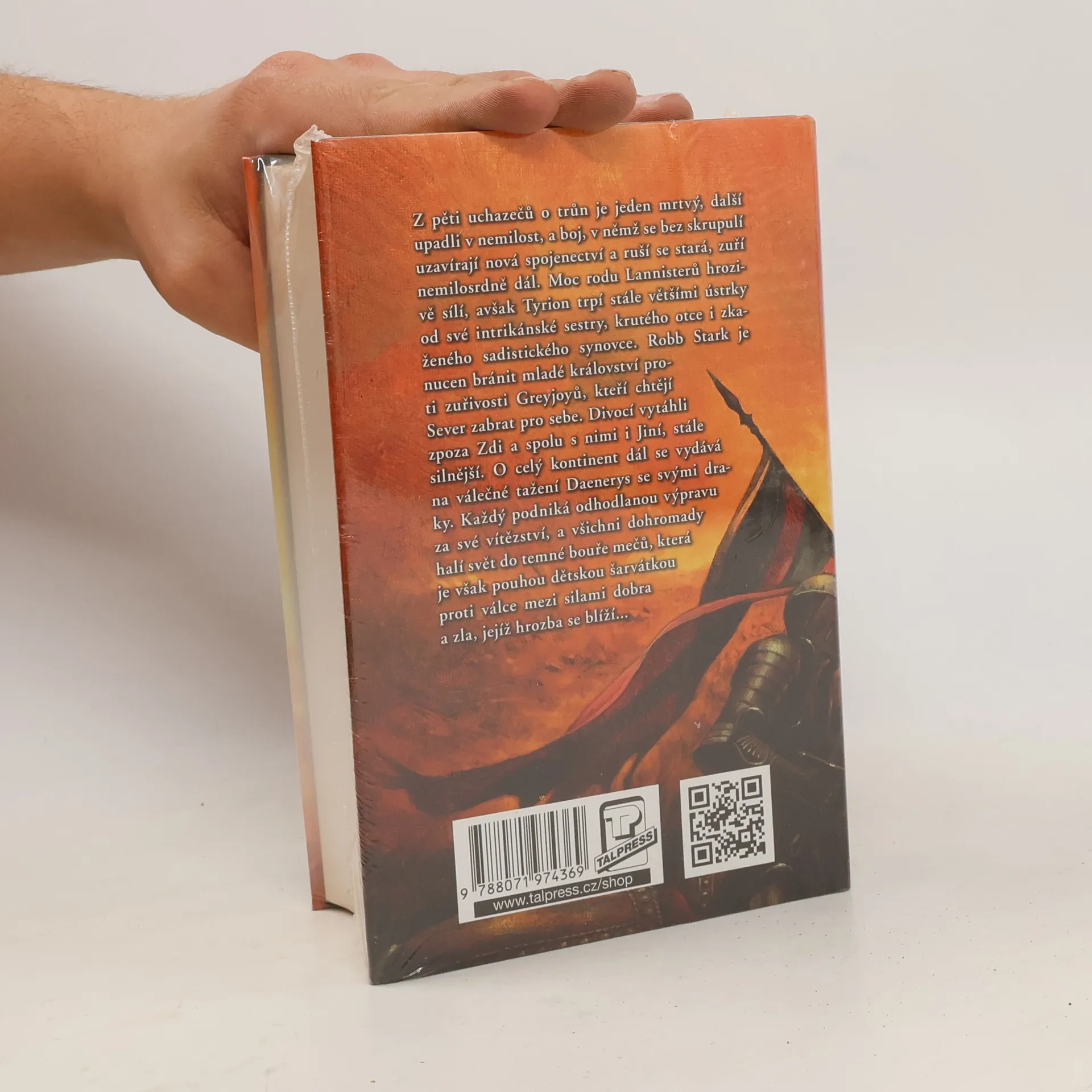 Z pěti uchazečů o trůn je jeden mrtvý, další upadli v nemilost, a boj, v němž jsou bez skrupulí uzavírána nová spojenectví a rušena stará, zuří nemilosrdně dál. Moc rodu Lannisterů hrozivě sílí, avšak Tyrion trpí stále většími ústrky od své intrikánské sestry, krutého otce i zkaženého sadistického synovce. Robb Stark je nucen bránit mladé království proti zuřivosti Greyjoyů, kteří si chtějí Sever zabrat pro sebe. Divocí vytáhli zpoza Zdi a spolu s nimi nabývají na síle Jiní. O celý kontinent dál se vydává na válečné tažení Daenerys a její draci nebezpečně rostou.Každý podniká odhodlanou výpravu za své vítězství, a všichni dohromady halí svět do temné bouře mečů, která je však pouhou dětskou šarvátkou ve srovnání s válkou mezi silami dobra a zla, jejíž hrozba se blíží…