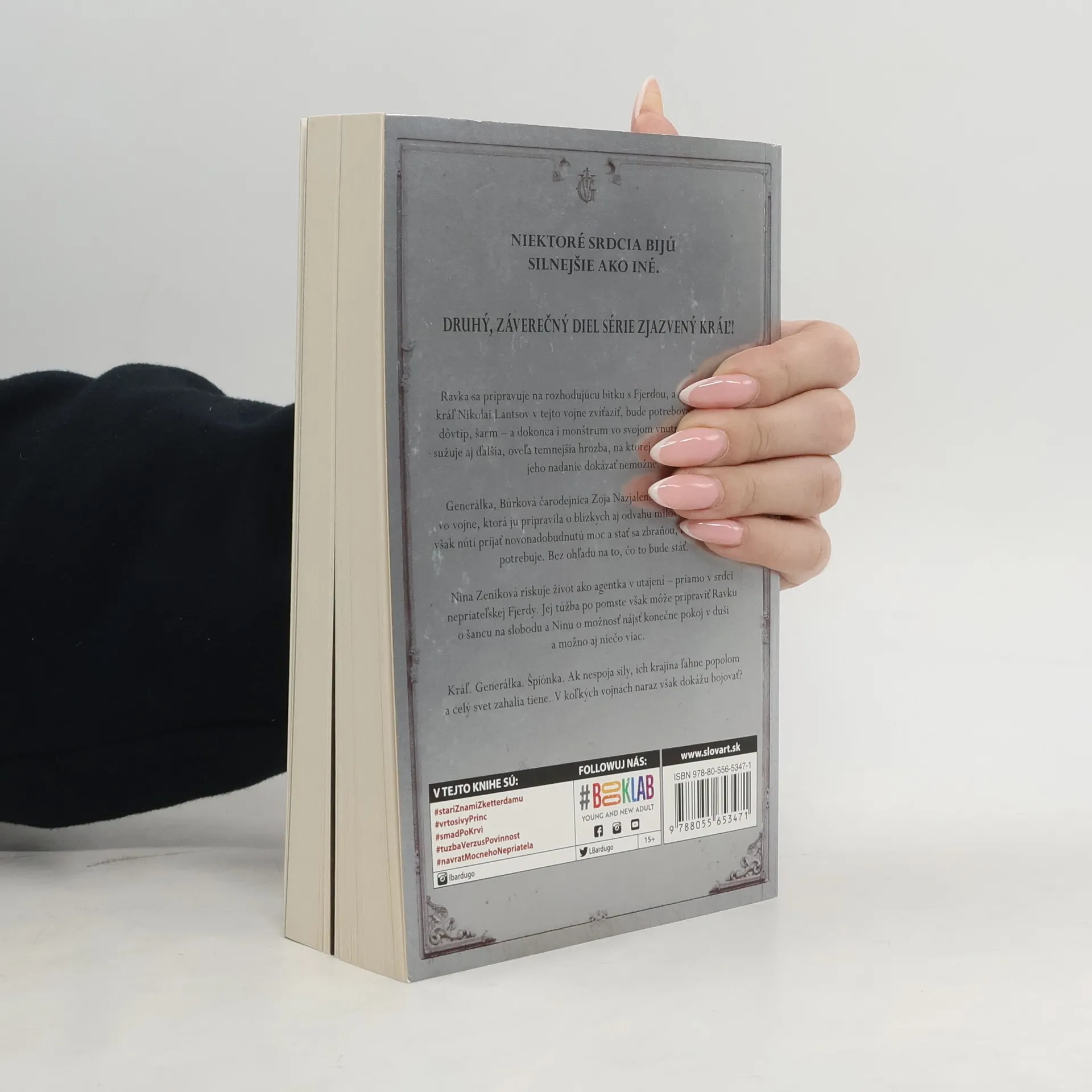 Ďalšia kniha z magického sveta gríš, ktorý ožil v seriálovom hite na Netflixe! Ravka sa pripravuje na rozhodujúcu bitku s Fjerdou, a ak chce mladý kráľ Nikolai Lantsov jej obrovskú armádu poraziť, bude potrebovať všetok svoj dôvtip a šarm – a dokonca aj monštrum vo svojom vnútri. Krajinu však sužuje aj ďalšia, oveľa temnejšia hrozba, na ktorej ani jeho nadanie robiť z nemožného možné nestačí. Generálka, Búrková čarodejnica Zoja Nazjalenská už prišla vo vojne o veľa. Zočila smrť svojho mentora a vzkriesenie najväčšieho nepriateľa, povinnosť ju však núti prijať novonadobudnutú moc a stať sa zbraňou, ktorú jej krajina potrebuje. Bez ohľadu na to, čo to bude stáť. Kým sa jej priatelia a spojenci pripravujú na osudový boj, Nina Zeniková riskuje život počas práce v utajení – priamo v srdci nepriateľskej Fjerdy. Jej túžba po pomste však môže pripraviť Ravku o šancu na slobodu a Ninu o možnosť zahojiť jej trúchliace srdce. Kráľ. Generálka. Špiónka. Spoločne musia nájsť spôsob, ako v temnote vykročiť k budúcnosti. Alebo sledovať, ako ich krajina ľahne popolom a celý svet zahalia tiene.