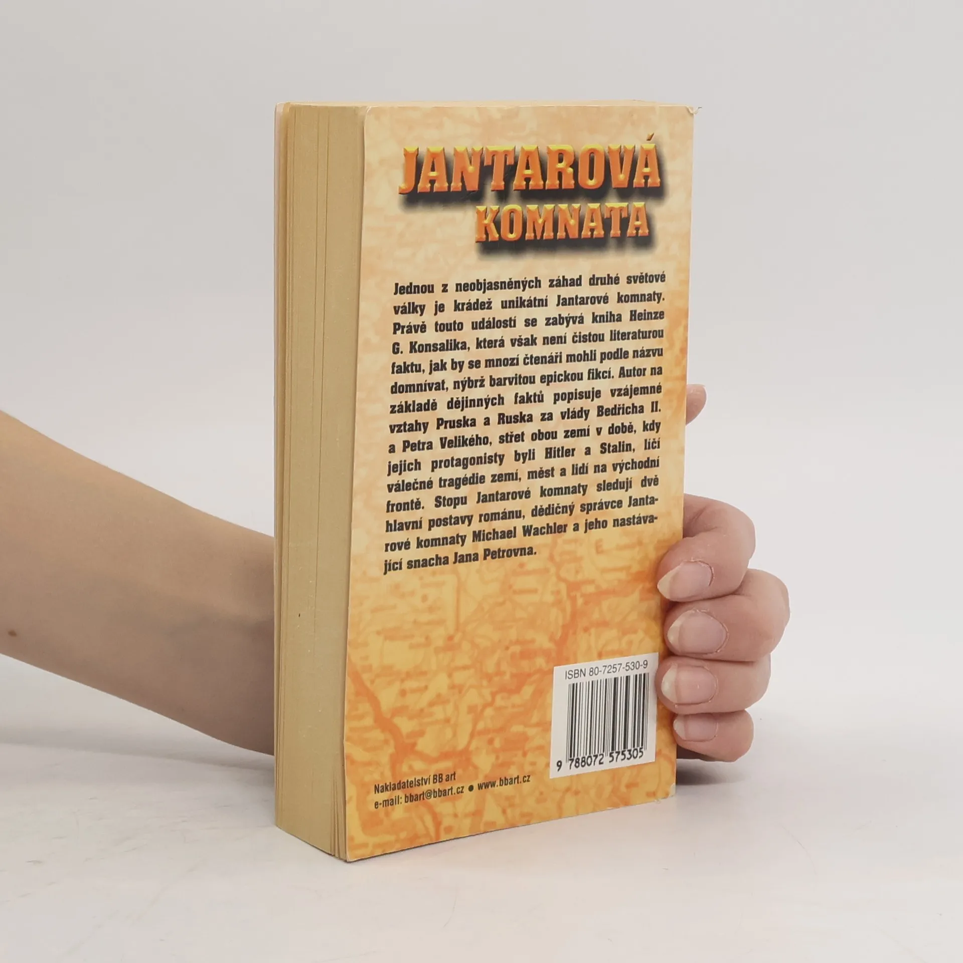 Jednou ze záhad druhé světové války je krádež unikátní Jantarové komnaty. Na základě dějinných faktů jsou popsány vzájemné vztahy Pruska a Ruska za vlády Bedřicha II. a Petra Velikého a střet obou zemí, kdy jejich protagonisty byli Hitler a Stalin.