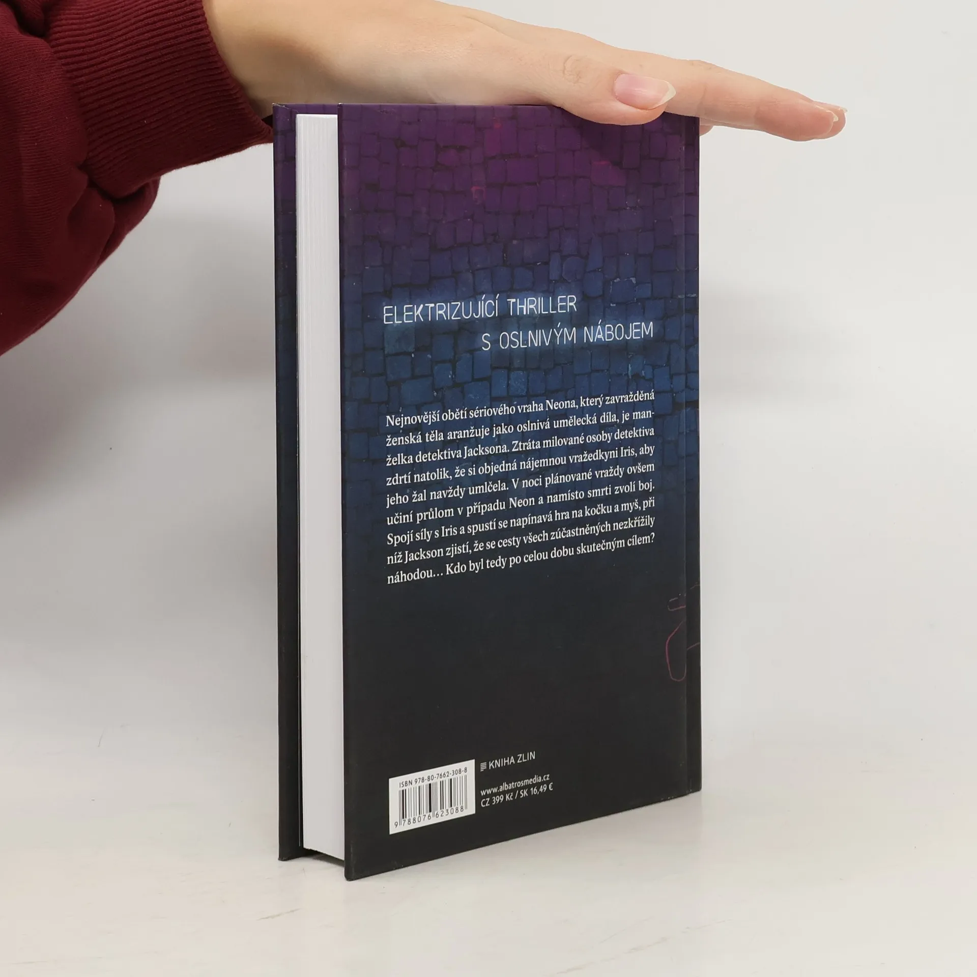 Vrah, který chce zářit. Elektrizující thriller s oslnivým nábojem Nejnovější obětí sériového vraha, který své ženské oběti aranžuje jako neonová umělecká díla, je manželka detektiva Jacksona. Zoufalý steskem si Jackson objedná nájemného vraha. V noci plánované vraždy ale udělá v případu Neon průlom a dohodne se se svou vražedkyní Iris na spolupráci. Spustí se napínavá hra na kočku a myš, při níž detektiv zjistí, že se mu cesty s Neonem ani Iris nezkřížily náhodou. Kdo byl tedy po celou dobu skutečným cílem?