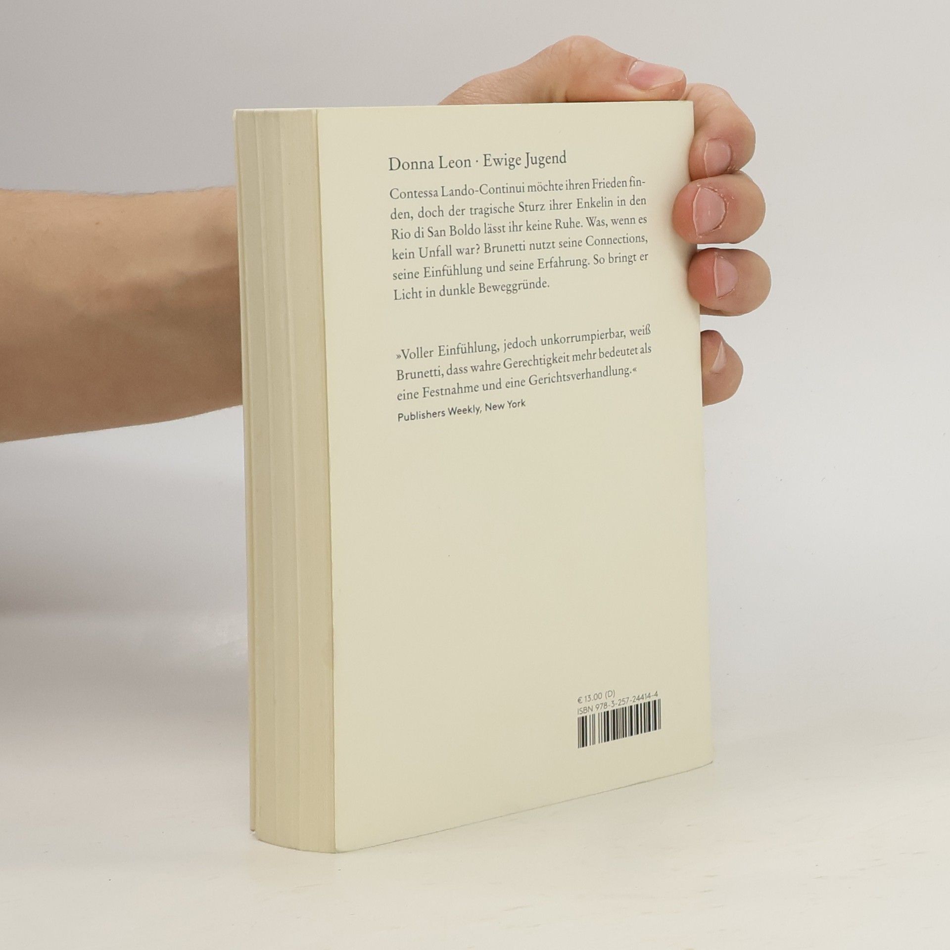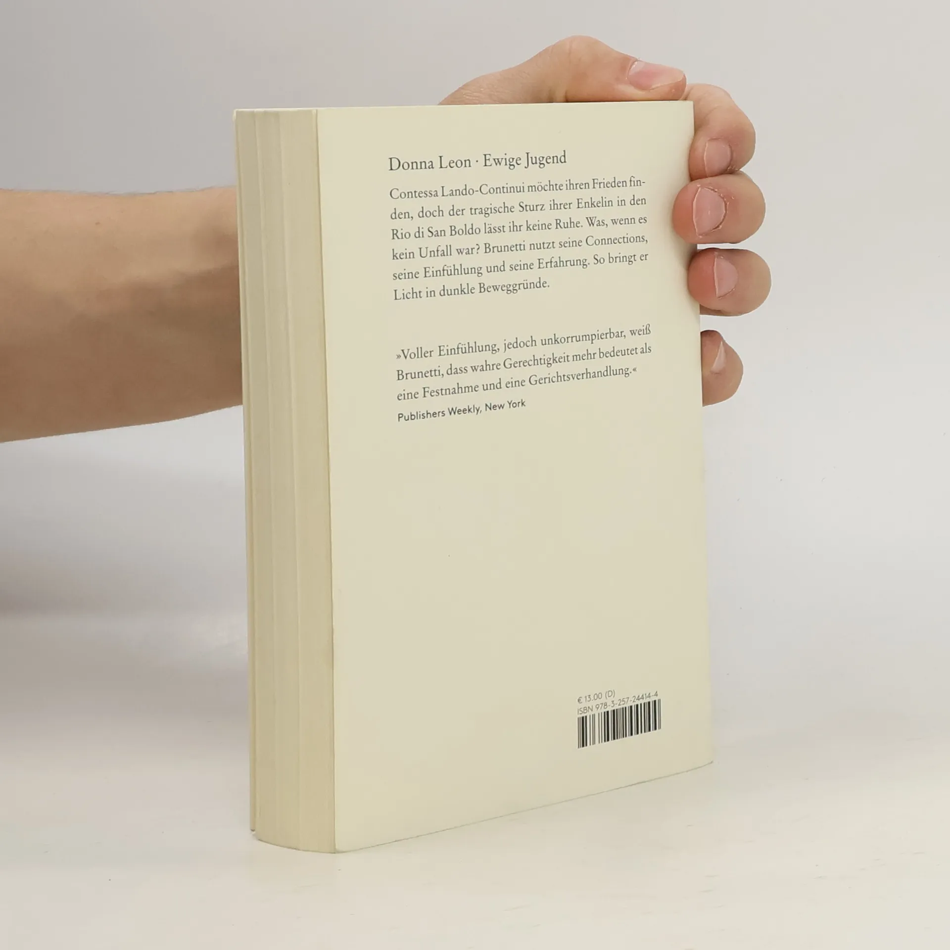 Brunettis Bravourstück. Der Commissario ermittelt in den Tiefen der Erinnerung: Contessa Lando-Continui möchte ihren Frieden finden, doch der tragische Sturz ihrer Enkelin in den Rio di San Boldo lässt ihr keine Ruhe. Was, wenn es kein Unfall war? Brunetti nutzt seine Connections, seine Einfühlung und seine Erfahrung. Der Jubiläumsfall.