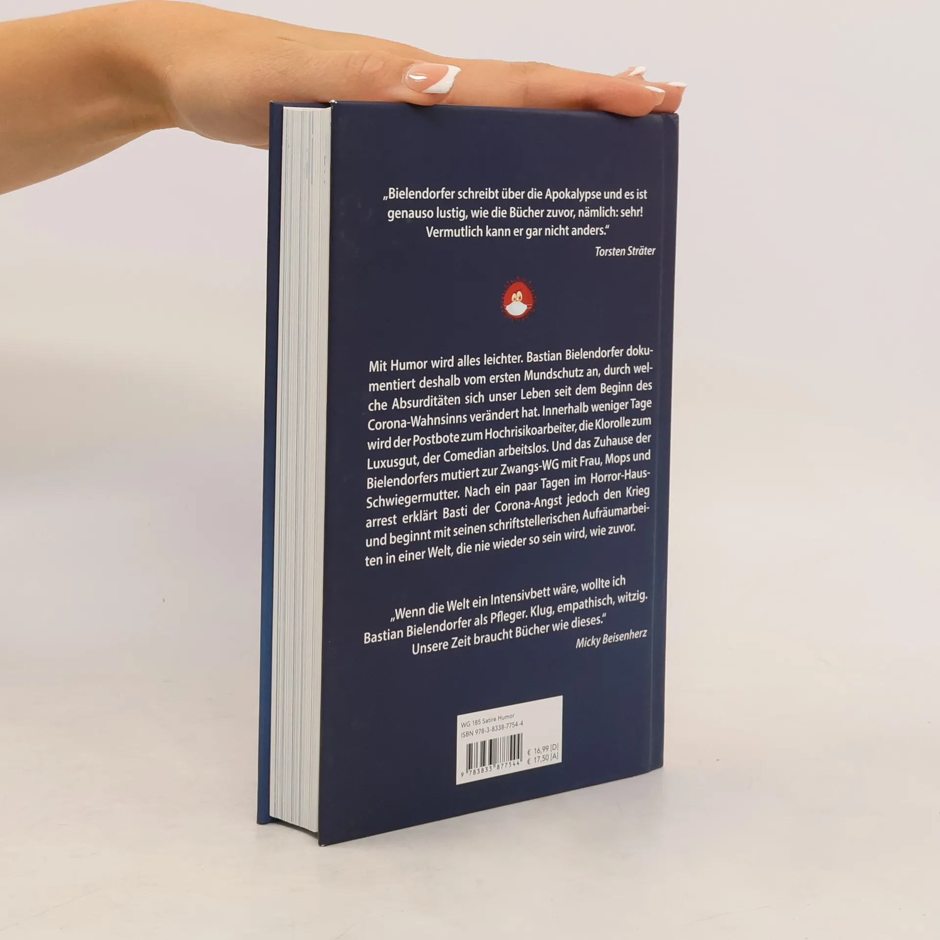 "Wenn die Welt ein Intensivbett wäre, wollte ich Bastian Bielendorfer als Pfleger. Klug, empathisch, witzig. Unsere Zeit braucht Bücher wie dieses." Micky Beisenherz Mit genügend Humor wird alles leichter. Bastian Bielendorfer dokumentiert deshalb vom ersten Tag an, durch welche Absurditäten sich unser Leben seit dem Beginn des Corona-Wahnsinns verändert hat. Innerhalb weniger Stunden wird die Hausärztin zur Seuchen-Expertin, der Postbote zum Hochrisikoarbeiter, die Klorolle zum Luxusgut. Und Bastis Zuhause mutiert zur Zwangs-WG mit Frau, Mops und Schwiegermutter. Nach ein paar Tagen im Horror-Hausarrest erklärt Basti der Corona-Angst den Krieg, bügelt entschlossen seine Jogginghose und beginnt mit seinen schriftstellerischen Aufräumarbeiten in einer Welt, die nie wieder so sein wird wie zuvor. "Bielendorfer schreibt über die Apokalypse und es ist genauso lustig, wie die Bücher zuvor, nämlich: sehr! Vermutlich kann er gar nicht anders." Torsten Sträter