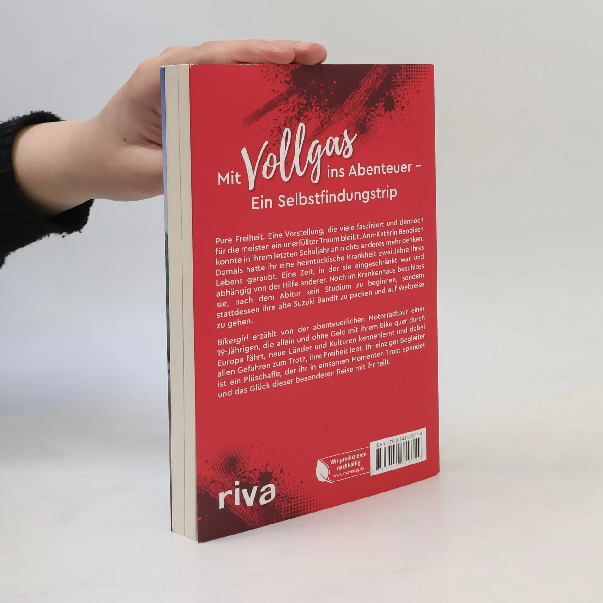 Pure Freiheit. Eine Vorstellung, die viele fasziniert und dennoch für die meisten ein unerfüllter Traum bleibt. Ann-Kathrin Bendixen konnte in ihrem letzten Schuljahr an nichts anderes mehr denken. Damals hatte ihr eine heimtückische Krankheit zwei Jahre ihres Lebens geraubt. Eine Zeit, in der sie eingeschränkt war und abhängig von der Hilfe anderer. Noch im Krankenhaus beschloss sie, nach dem Abitur kein Studium zu beginnen, sondern stattdessen ihre alte Suzuki Bandit zu packen und auf Weltreise zu gehen. Bikergirl erzählt von der abenteuerlichen Motorradtour einer 19-Jährigen, die allein und ohne Geld mit ihrem Bike quer durch Europa fährt, neue Länder und Kulturen kennenlernt und dabei allen Gefahren zum Trotz, ihre Freiheit lebt. Ihr einziger Begleiter ist ein Plüschaffe, der ihr in einsamen Momenten Trost spendet.