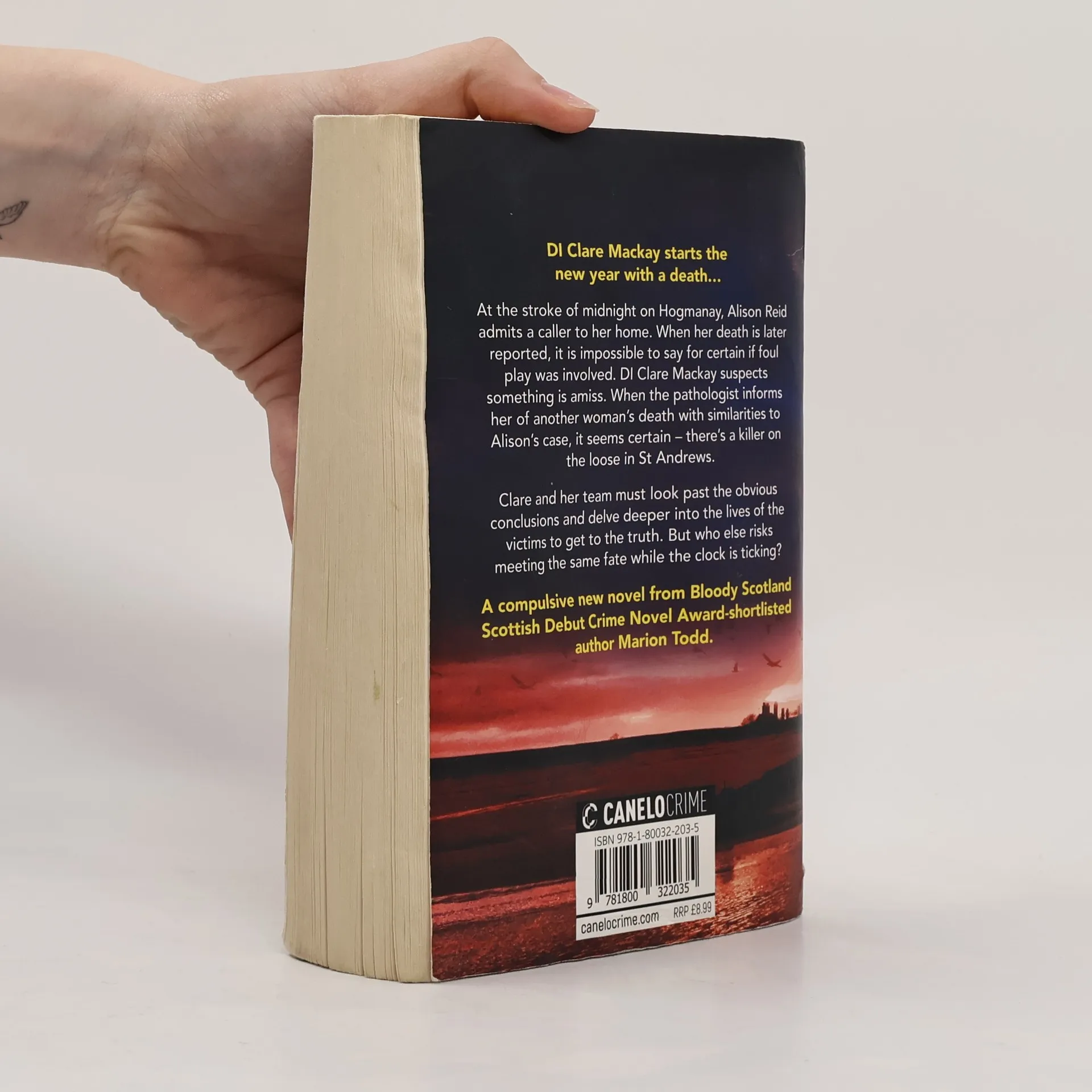 DI Clare Mackay starts the new year with a death... It is the stroke of midnight on Hogmanay when Alison Reid admits a caller to her home. When her death is later reported, DI Clare Mackay attends the scene. The initial evidence does not rule out murder, but it's not possible to say for certain if foul play was involved. Yet when the coroner informs Clare about a post mortem of a young woman found in the Kinness Burn, and with some similarities to Alison's case, it seems there's a strong chance that there's a killer on the loose in St Andrews. Clare and her team will have to look past the obvious conclusions and delve deeper into the lives of the victims to get to the truth. But who else risks meeting the same fate while the clock is ticking? Don't miss this compulsive new addition to the gripping DI Clare Mackay series from Bloody Scotland Scottish Debut Crime Novel 2020 shortlisted author Marion Todd