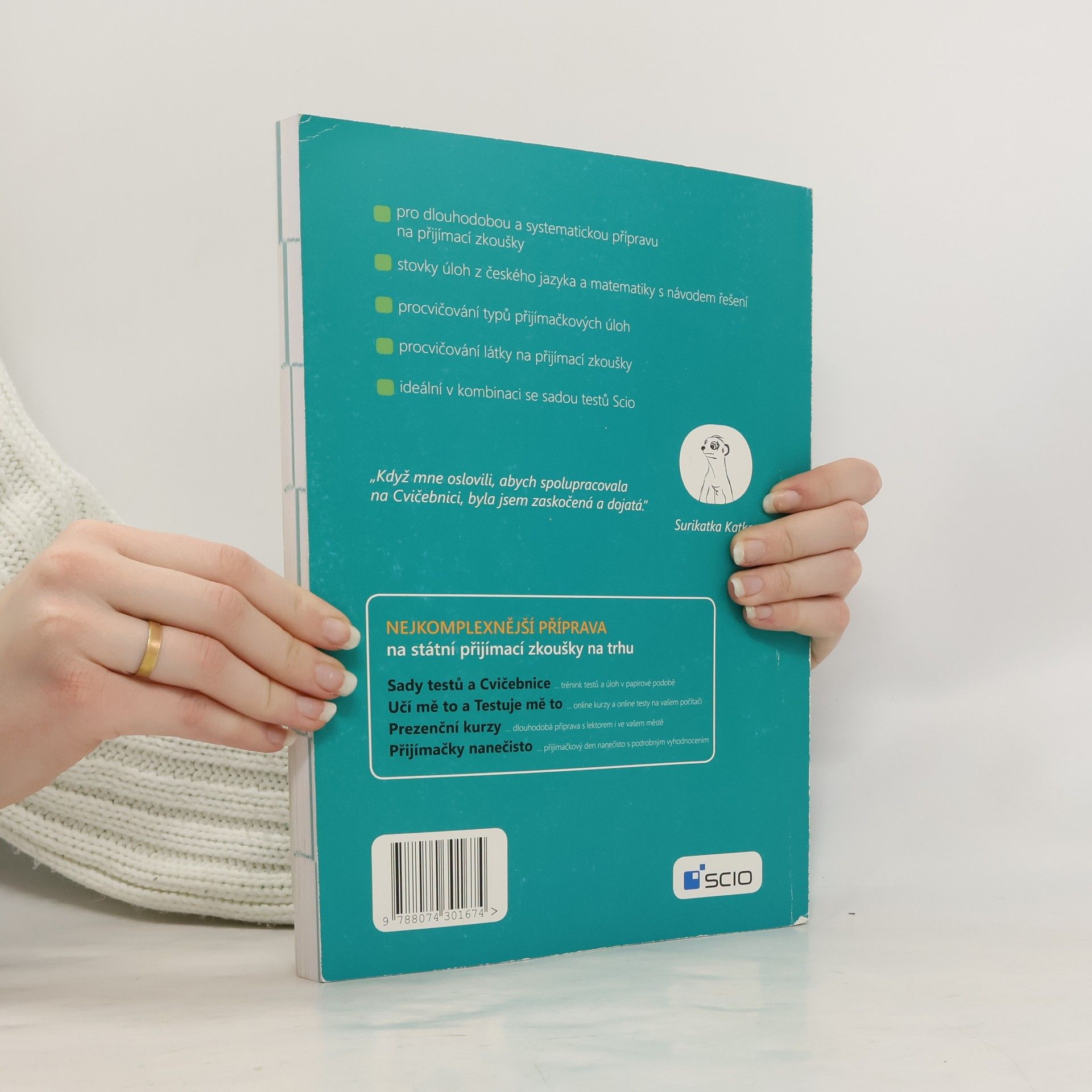 Procvičte učivo k přijímacím zkouškám na typových úlohách s pomocí návodů k řešení. Obsahuje 97 úloh z MA a 145 úloh z ČJ, typové úlohy používané u přijímaček, podrobný návod ke správnému řešení a zábavného průvodce - surikata - k udržení motivace a pozornosti. Žák se seznámí s podobou úloh na přijímací zkoušky. Díky podrobným návodům k řešení s vysvětlením látky se naučí úlohy řešit a zopakuje si učivo. Získá představu, jak na tom je a v čem se má ještě zlepšit. Cvičebnice je koncipována tak, aby se žák nejprve pokusil vyřešit úlohy sám a teprve pak se podíval na návod. Cvičebnice obsahuje celkem 242 úloh z MA a ČJ rozdělených do 7 kapitol: číslo a proměnná; geometrie; funkce a práce s daty mluvnice; sloh a komunikace; literatura; všeobecný přehled.